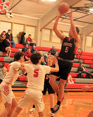 saw Potlatch build on their lead each quarter.The Pirates trailed just 10-14 at the end of the first quarter and 16-23 at the half. However Potlatch pushed their lead to 20-32 by the end of the third quarter and wound up outscoring the Pirates 3-9 in the fourth quarter for an 18 point win. Hanson led the Pirates in scoring with 7 points. Forsmann scored 6. Lorentz scored 4 and Shears and Elven scored 2 each. Prairie is now 5-13 on the season and 4-9 in league play. Potlatch also won the JV game 26-51. Prairie 10 6 4 3 -23 Potlatch 14 9 9 9 -41 Prairie-M. Wemhoff 0 0-0 0, Shears 1 0-0 2, Lorentz 2 0-0 4, Hanson 3 1-2 7, Behler 1 0-0 2, Forsmann 2 2-2 6, Elven 1 0-0 2, Schwartz 0 0-0 0. 3-pointers-none. Potlatch-C. Lovell 1 0-0 2, Clark 3 0-0 7, Lusby 0 0-0 0, E. Lovell 6 2-4 16, Vowels 4 0-2 10, Barnes 0 0-0 0, Amos 3 0-0 6. Totals 17 2-8 41.3-pointers-E. Lovell 2, Vowels 2, Clark. ![]() Matt Wemhoff gets ready to shoot at C.V. ![]() Lee Forsmann found the going rough inside at C.V. Also shown is Trenton Lorentz. ![]() Trenton Lorentz puts up a jump shot at C.V. Also shown is Noah Behler. ![]() Phil Schwartz looks to pass against Genesee. ![]() Riley Shears puts up a shot against Genesee. ![]() Matt Wemhoff shoots from the corner against Genesee. *indicates league game NOVEMBER