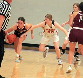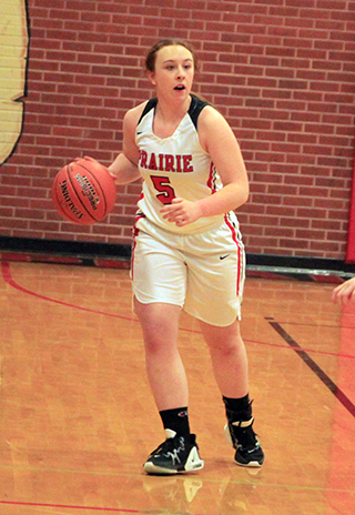 putback and Kristin Wemhoff scored after making a steal for a 9-0 lead.Troy broke into the scoring column with 2 free throws then Prairie scored 7 straight to finish off the first quarter. Lexi Schumacher drove to the hoop for a lay-up then Wemhoff sank a 3-pointer. Wemhoff made it 16-2 with a drive to the hoop for a lay-up. Prairie scored the first 3 points of the second quarter as Wemhoff made a free throw and Kylie Schumacher scored a lay-up. After a Troy free throw, Riley Enneking scored when she putback her own missed shot. After Troy’s Dericka Morgan made 3 of 5 free throws, Prairie closed out the half with a 9-0 run for a 30-6 halftime lead. Enneking scored a free throw then Wemhoff scored 3 straight baskets. Kylie Schumacher scored the final basket of the half. Troy scored only free throws in the first half as they were 0 for 9 from the field. They also had a whopping 29 turnovers in just the first half. Lexi Schumacher hit a bank shot to open the second half scoring then Troy finally made their first basket of the game. Prairie then went on a 19-1 run before Troy made their second, and last, basket of the game. Prairie meanwhile hit 12 of 18 shots in the third quarter as they took a 58-13 lead into the fourth. Lexi Schumacher scored 9 points in the quarter while Wemhoff scored 7. Kylie Schumacher scored 4 while Tara Schlader, Hanson, Sage Elven and Alli Geis scored 2 each. In the fourth quarter Troy scored a free throw to open the scoring then Prairie scored the game’s final 6 points. Wemhoff scored a pair of lay-ups and Schlader made 2 free throws. Wemhoff wound up with 25 points to lead the scoring. She also had 10 rebounds, 8 steals and 4 assists, leading the team in all categories. Lexi Schumacher scored 16 points. Kylie Schumacher scored 8 with Schlader and Hanson scoring 4 each. Enneking scored 3 and Elven and Geis scored 2 each. Prairie dominated the boards 45-27. Schlader added 5 steals and 3 assists. Prairie was 27 for 64 from the field, 42%$, and 7 for 22 at the line, 32%. Troy was 2 for 19 from the field, 11%, and 10 for 22 at the line, 45%. Troy had 42 turnovers in the game. Prairie 16 14 18 6 -64 Troy 2 4 7 1 -14 Prairie-L. Schumacher 7-20, 0-0, 16; Wemhoff 11-18, 2-9, 25; Schlader 1-5, 2-8, 4; Hanson 1-2, 2-2, 4; K. Schumacher 4-8, 0-1, 8; Elven 1-3, 0-0, 2; Enneking 1-5, 1-2, 3; Geis 1-2, 0-0, 2; Shears 0-0, 0-0, 0; Lockett 0-1, 0-0, 0. 3-pointers-L. Schumacher 2, Wemhoff. Troy-Tyler 1-5, 4-7, 6; Gray 1-2, 0-0, 2; Hawley 0-4, 1-7, 1; Phillis 0-3, 0-1, 0; Morgan 0-3, 5-7, 5; House 0-1, 0-0, 0; Moore 0-0, 0-0, 0; Woolverton 0-0, 0-0, 0. 3-pointers-none. Vs. Kamiah In the game against Kamiah