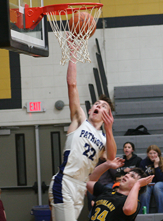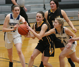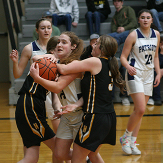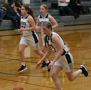 successive quarter.Timberline lead early at 4-7 but SJB then went on a 13-0 scoring run. Cody Wassmuth hit back-to-back shots then Chmelik scored 9 straight points. He converted a 3-pont play then hit back-to-back 3-point shots to give the Patriots a 17-7 lead. Timberline broke the run with a basket to make it 17-9. Timberline scored the first two baskets of the second quarter to pull within 4. Levi Wassmuth then scored on an inbounds play. After another Spartan baskets Clay Weckman scored a basket and Cody Wassmuth made a 3-pointer to push the lead back to 6 at 24-18. Timberline then went on a 3-14 run to tie the score at 27. During that time Chmelik tweaked his ankle that he apparently had already been having issues with. The Patriots were already down a starter as Stubbers missed the game due to illness. Cody Wassmuth scored with 18 seconds left to give SJB a 29-27 halftime lead. A layup and then a 3 by Weckman early in the third quarter put the Patriots up by 5 at 34-29. Timberline then outscored the Patriots 2-10 to take a 36-39 lead. A free throw by Levi Wassmuth and a 3 by Cody Wassmuth put the Patriots back on top 40-39. Timberline tied it with a free throw but Cody Wassmuth scored again to put the Patriots up by 2. Timberline then scored 4 straight to take a 42-44 lead into the fourth quarter. Timberline then outscored the Patriots 2-10 to open the fourth quarter and take a 44-54 lead. The teams traded baskets to make it 46-56. The Patriots then scored 6 straight points to cut the deficit to 4. Matthew Warren scored a free throw then Weckman made a free throw and a tip-in. A steal and lay-up by Levi Wassmuth with 1:58 left cut the lead to 52-56. That turned out to be the Patriots final points. Timberline scored the game’s final 6 points as the Patriots went to putting up 3-point shots but couldn’t hit on any of them. Cody Wassmuth wound up as the Patriots’ leading scorer with 15 points. Weckman scored 12. Chmelik scored 11, all in the first quarter. He tried to go in the third quarter but was limping noticeably. He also went back in the game in the fourth quarter after trying to walk it off on the sidelines. He was better but still obviously not 100%. Levi Wassmuth scored 9, John Uhlenkott scored 4 and Warren scored 1. SJB had a 38-37 edge on the boards. Chmelik and Warren each had 8 to lead the team. Warren had 4 steals and Cody Wassmuth and Levi Wassmuth each had 3 assists. SJB was 21 for 65 from the field, 32%, and 5 for 14 at the line, 36%. Timberline was 22 for 48 from the field, 46%, and 14 for 20 at the line, 70%. The Patriots had no answer defensively for Timberline post Saimone Tuikolovatu who scored 30 points on 14 for 20 shooting and added 15 rebounds. Parker Brown added 23 points for the Spartans and was 8 for 9 at the free throw line and scored 13 in the fourth quarter. The Patriots are now 7-7 on the season (assuming a win over Meadows Valley who was winless going into their game Saturday). They finish their league schedule with a 5-5 record. They will be the #4 seed and host Highland in their District opener Monday, Feb. 20. SJB 17 12 13 10 -52 Timberline 9 18 17 18 -62 SJB-C. Wassmuth 6-20, 1-2, 15; C. Weckman 5-19, 1-5, 12; Chmelik 4-10, 1-1, 11; Warren 0-5, 1-4, 1; L. Wassmuth 4-8, 1-2, 9; Hoene 0-1, 0-0, 0; Uhlenkott 2-3, 0-0, 4; Nuxoll 0-0, 0-0, 0. 3-pointers-C. Wassmuth 2, Chmelik 2, Weckman. Timberline-Brown 6-13, 8-9, 23; West 0-3, 0-0, 0; Nelson 2-3, 1-4, 5; Tuikolovatu 14-20, 1-1, 30; Hunter 0-7, 4-6, 4; Mabberly 0-1, 0-0, 0. 3-pointers-Brown 3, Tuikolovatu. Girls District vs. Kendrick The Lady Patriots were dropped into the loser’s bracket by Kendrick in a game dominated by the #1 seeded Tigers from the start.Kendrick led 4-14 by the end of the first quarter and 8-32 by halftime. The Tigers extended the lead in the third quarter, outscoring the Lady Patriots 6-14 to take a 14-46 lead into the fourth quarter. The final quarter was played with a running clock with each team scoring 4 points. Wassmuth was the leading scorer for the Patriots with 10 points. Palmer scored 3 while Waters and Sonnen scored 2 each and Dahlsrud scored 1. SJB will play Nezperce on Thursday, Feb. 9 at 6 p.m. at Lapwai in an elimination game. The winner will play on Friday for a chance to go to State. The Lady Patriots are now 4-11 on the season and finished their league schedule with a 2-8 record. SJB 4 4 6 4 -18 Kendrick 14 18 14 4 -50 SJB-Wassmuth 5 0-0 10, Dahlsrad 0 1-4 1, Uhlenkott 0 0-0 0, Palmer 1 1-2 3, Cummings 0 0-0 0, Waters 0 2-4 2, Chmelik 0 0-0 0, Sonnen 1 0-0 2. 3-pointers-none. Kendrick-Rose Stewart 7 0-0 14, Heimgartner 2 0-0 4, Anderson 4 1-2 9, Crowley 0 0-0 0, Kimberling 0 0-0 0, Casto 0 0-0 0, Silflow 3 0-0 6, Ruby Stewart 0 2-4 2, Boyer 1 0-0 2, Taylor 5 0-0 11, Clemenhagen 1 0-0 2. 3-pointers-Taylor. ![]() Sarah Waters shoots in the girls regular season finale against Highland. ![]() Clay Weckman brings the ball up against Highland. Also shown is Levi Wassmuth. ![]() Cody Wassmuth puts up a shot against Highland. Also shown is Noah Beckman, 14. ![]() Luke Stubbers and Tory Chmelik doubleteam a Highland player. ![]() Tory Chmelik goes for a lay-up against Highland. ![]() Julia Wassmuth brings the ball up in the District opener against Highland. Also shown are Sarah Waters and Rachel Sonnen. ![]() Sarah Waters gets tied up by Highland for a jump ball. Also shown are Vivian Dahlsrud and Serinah Palmer. ![]() Serinah Palmer shoots in the District game against Highland. ![]() Vivian Dahlsrud and Claire Uhlenkott play defense against Highland in the District opener. Photos by Steve Wherry of the Lewis County Herald. Boys team has JV, girls don’t NovemberFirst game starts at 6 p.m. unless indicated. Home games are played at Highland High School in Craigmont. 12-Girls vs. Cascade at Highland, 5 p.m, lost 24-34 December 17-Girls at C.V. 1-Boys at Meadows Valley, 5 p.m., V only January2-Girls vs. C.V. at Highland 6-Boys and Girls at Kendrick 4:30 p.m., Boys 