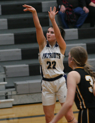 fourth quarter.Highland tried to rally back in the fourth but the Patriots had built too big of a lead. Highland outscored the Patriots 9-22 in the fourth quarter. Cody Wassmuth led the scoring for the Patriots with 15 points. Tory Chmelik had a double-double of 13 points and 15 rebounds and Levi Wassmuth scored another 12. Clay Weckman scored 7, Luke Stubbers 6, Matthew Warren 5 and Stallone Hoene and Noah Beckman 2 each. The Patriots are now 6-6 on the season and 5-4 in league play. St. John Bosco also won the JV game 32-2. SJB 13 19 21 9 -62 Highland 10 8 8 22 -48 SJB-Cody Wassmuth 6 2-3 15, Stubbers 3 0-0 6, Hoene 1 0-0 2, C. Weckman 3 0-0 7, Chmelik 6 0-0 13, Warren 2 1-1 5, L. Wassmuth 6 0-0 12, Nuxoll 0 0-0 0, S. Weckman 0 0-0 0, Rose 0 0-0 0, Beckman 1 0-0 2. 3-pointers-C. Wassmuth, C. Weckman, Chmelik. Highland-Smith 0 0-0 0, Knowlton 10 2-5 22, Crow 0 0-2 0, Miller 0 0-0 0, Watson 9 3-4 21, Crow 1 3-4 5. 3-pointers-none. Girls vs. Highland The Lady Patriots concluded their regular season in a big way. The Patriots jumped out to a 6-0 lead as Julia Wassmuth scored a pair of free throws and Sarah Waters and Serinah Palmer each scored a basket. After Highland got on the scoreboard the Patriots scored another 6 straight points to lead 12-2 at the end of the first quarter. In the second quarter Highland scored the first 2 points and the last 2 points but SJB scored all 8 points in between as the Patriots took a 20-6 lead at the half. Palmer had 7 first half points while Waters had 6 and Wassmuth 5. Rachel Sonnen scored the other 2 points. SJB scored first in the third quarter but Highland scored the next 4 points. Wassmuth then made the only 3-pointer of the game to kick off a 15-0 run for the Patriots. Wassmuth scored 7 in the quarter while Noelle Chmelik scored 4 and Palmer 3. SJB led 38-12 after 3 quarters. Two baskets by Waters to open the fourth quarter invoked the running clock rule as SJB led 42-12. Highland outscored SJB 1-2 the rest of the way. Wassmuth had a double-double with 12 points and 10 rebounds. Waters also scored 12 points. Palmer scored 10 points and had 9 rebounds and 7 steals. Chmelik and Sonnen scored 4 points each and Vivian Dahlsrud scored the game’s final point. Rebounding was even at 41-41. Wassmuth had 4 assists to lead the team. SJB was 17 for 59 from the field, 29%, and 8 for 17 at the line, 47%. Highland was 7 for 38 from the field, 18%, and 0-4 at the line. The Patriots finished their season with a 3-9 record, 2-8 in league play. SJB 12 8 18 5 -43 Highland 2 4 6 2 -14 SJB-Chmelik 2-9, 0-0, 4; Dahlsrud 0-4, 1-2, 1; Wassmuth 4-12, 3-6, 12; Palmer 3-11, 4-6, 10; Waters 6-15, 0-3, 12; Sonnen 2-3, 0-0, 4; Uhlenkott 0-5, 0-0, 0; Cummings 0-0, 0-0, 0. 3-pointers-Wassmuth. Highland-Owens 0-2, 0-2, 0; Smith 1-9, 0-0, 2; Shaylee Stamper 2-10, 0-0, 4; Thomason 0-6, 0-0, 0; Beck 1-4, 0-0, 2; Hix 1-4, 0-2, 2; Branzel 1-1, 0-0, 2; Shyanne Stamper 1-1, 0-0, 2; Bovey 0-0, 0-0, 0. 3-pointers-none. Girls District opener vs. Highland In a loser-out game SJB matched up with Highland again 3 days later also at Craigmont.As the higher seed, SJB was the home team even though they played at Craigmont. The first quarter went much like game one earlier in the week. Highland scored the first 5 points of the game. After a Highland basket, SJB scored the next 6 to take an 11-2 lead by the end of the quarter. Waters got Highland going with 8 points in the quarter. Wassmuth scored 2 and Palmer 1. SKB went to a full-court press to force 10 Highland turnovers several of which were converted into points. In the second quarter the Patriots went ice-cold from the field, going 0 for 16 and scoring only 2 free throws. Waters sank both free throws to open the scoring in the quarter and give SJB a 13-2 lead. Highland scored the next 4 points to cut the margin to 13-6 at the half. SJB came out in their press again in the third quarter and forced 13 more Highland turnovers. They also found their shooting touch again as they hit 7 of 13 from the field. Palmer scored 6 in the quarter while Waters scored 4 and Wassmuth and Chmelik 2 each as highland took a 30-8 lead into the fourth quarter. Highland finally got some offense going in the final period of their season as they scored the first 7 points of the fourth quarter to trim the lead to 30-15. Chmelik broke the dry spell with a free throw and Wassmuth added a lay-up after driving the length of the court to make it 33-15. Highland scored the game’s final points. Waters wound up with 16 points and 11 rebounds to lead the team in both categories. She nearly had a triple-double as she had 9 steals. Palmer scored 8 points and had 9 rebounds. Wassmuth scored 6 with 10 rebounds. Chmelik added 3 points. Highland had a 42-47 edge on the boards. Wassmuth and Palmer each had 4 steals and Wassmuth had 4 assists. The Patriots were 13 for 64 from the field, 20%, and 7 for 23 at the line, 30%. Highland was 8 for 39 from the field, 21%, and 1 for 2 at the line, 50%. SJB 11 2 17 3 -33 Highland 2 4 2 9 -17 SJB-Chmelik 1-7, 1-2, 3; Dahlsrud 0-7, 0-0, 0; Wassmuth 3-13, 0-0, 6; Palmer 3-11, 2-8, 8; Waters 6-22, 4-13, 16; Uhlenkott 0-0, 0-0, 0; Sonnen 0-3, 0-0, 0; Cummings 0-0, 0-1, 0. 3-pointers-none. Highland-Owens 0-3, 0-0, 0; Smith 1-6, 1-2, 3; Thomason 0-1, 0-0, 0; Beck 1-6, 0-0, 2; Shaylee Stamper 5-17, 0-0, 10; Hix 1-5, 0-0, 2; Branzel 0-1, 0-0, 0; Shyanne Stamper 0-0, 0-0, 0; Bovey 0-0, 0-0, 0. 3-pointers-none. Boys vs. Timberline In a battle for the #3