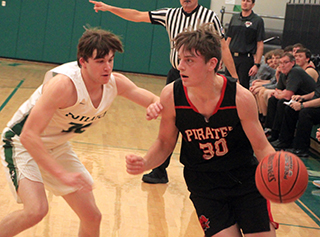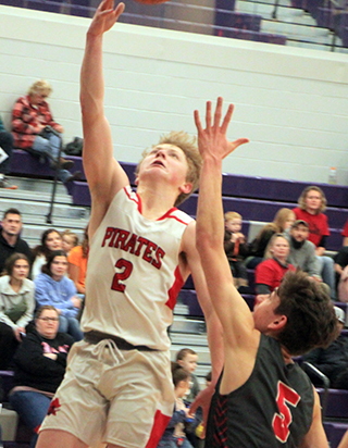 made it 11-3 at the quarter break.Wemhoff opened the second quarter scoring with a free throw and Bennie Elven scored on an inbounds play to make it 15-3. C.V. finally broke the run with a basket by Landon Schlieper. Prairie answered with a 3-pointer from the top of the key by Behler and a lay-up by Wemhoff after a steal by Shears. That put the Pirates up 20-5. Hanson scored Prairie’s only points in a 2-7 C.V. run that cut the lead to 10. However Forsmann convert a 3-point play for the final points of the half to give Prairie a 25-12 halftime lead. C.V. quickly cut the lead to 9 to start the third quarter but a 3 by Shears and a lay-up by Hanson pushed the lead back to 14 at 30-16. The Rams again cut the lead to 9 but 2 lay-ups by Shears gave Prairie a 34-21 lead heading into the fourth quarter. Elven and Shears each scored to open the fourth and put Prairie up 38-21. After a C.V. basket Logan Weber scored and Behler made 2 free throws to five Prairie their biggest lead of the game at 42-23. Schlieper tried to get the Rams back in the game by scoring all of C.V.’s points in a 2-13 run that got the Rams back within 8 at 44-36. Hanson scored Prairie’s 2 points in that run. The downside for the Rams is that there was only 36 seconds left when they got the deficit down to 8. Forsmann broke the run with a pair of free throws. After another Schlieper basket, Behler made 2 more free throws with 13 seconds left to make it 48-37. C.V. scored the final points just before the buzzer. Forsmann wound up with 12 points to lead the Pirates in scoring. Shears scored 9, Wemhoff 8, Behler 7, Hanson 6, Elven 4 and Weber 2. C.V. had a 26-36 advantage on the boards. Forsmann had 7 and Wemhoff 6 to lead the Pirates. Prairie forced 34 turnovers from the Rams. Wemhoff had 6 steals while Shears had 5 and Hanson had 4. 22 of the 34 turnovers came on steals. Shears and Wemhoff each had 3 assists. Prairie was 19 for 50 from the field, 38%, and 8 for 15 at the line, 53%. C.V. was 13 for 34 from the field, 38%, and 10 for 12 at the line, 83%. Prairie is now 6-17 on the season. Prairie 11 14 9 14 -48 C.V. 3 9 9 18 -39 Prairie-Wemhoff 4-5, 0-0, 8; Shears 4-8, 0-2, 9; Hanson 3-14, 0-0, 6; Behler 1-5, 4-7, 7; Forsmann 4-9, 4-6, 12; Weber 1-2, 0-0, 2; Elven 2-5, 0-0, 4; Lorentz 0-2, 0-0, 0. 3-pointers-Shears, Behler. C.V.-Osborn 1-5, 1-1, 3; Louwien 4-7, 0-0, 10; Schlieper 5-9, 9-11, 20; Kessler 0-2, 0-0, 0; Curtis 2-8, 0-0, 4; Raff 1-2, 0-0, 2. 3-pointers-Louwien 2, Schlieper. ![]() Shane Hanson looks to shoot at Potlatch. ![]() Bennie Elven with the ball at Potlatch. ![]() Riley Shears puts up a shot at Potlatch. ![]() Trenton Lorentz makes a pass at Potlatch. ![]() Lee Forsmann handles the ball in the corner at Potlatch. ![]() Matt Wemhoff scores a lay-up against C.V. at District. ![]() Shane Hanson pulls down a rebound against C.V. at District. *indicates league game NOVEMBER