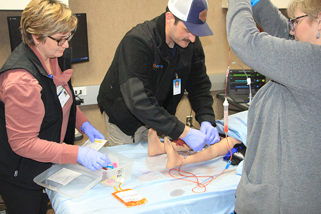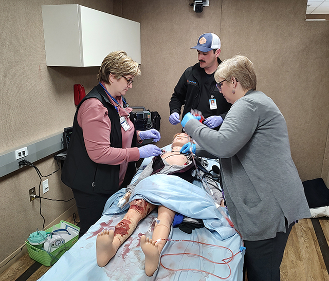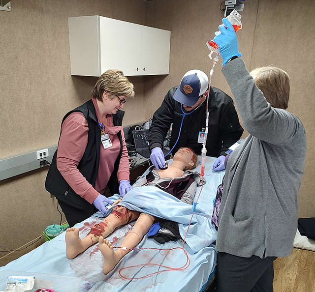 Thanks to a grant provided by Emergency Medical Service for Children of Idaho, a mobile training unit was able to visit St. Mary’s Health in Cottonwood on Thursday, March 2. Best Practices Medicine of Bozeman, MT, has a unit set up that can be pulled by a semi tractor that can provided hands-on, real-time simulations of hospital emergency room and other scenarios. For the purposes of the grant they were set up for infant and child simulations. The infant simulator can move and act like a real baby and can even be made to act like a baby would if it is having trouble breathing. It can also feel like you are getting a pulse. The child simulator had a couple of nasty injuries as part of the simulations such as a broken leg where the bone has come through the skin. Both simulators can be hooked up to monitors and give off lifelike results. They can give blood pressure readings and can even be hooked up intravenously to receive blood, saline or medicine just like a real person. Loren Deichman is one of the original developers of the set-up and was with his crew of Brandon Woodruff, Liz Parker and Matt Hopkins. They were to go through training with 35 health care professionals from St. Mary’s Health of Cottonwood and Clearwater Valley Health of Orofino. Deichman compared their unit to a flight simulator used during training of pilots. It gives you a chance to practice procedures without the real-life consequences so you’ll be better prepared when faced with a real-life situation. Although the unit was set up for pediatric simulations for this trip, it has nearly limitless capabilities. There are 4 rooms in the unit and each is set up with sound and video. The unit has its own servers and could upload the videos of the procedures to be used for training elsewhere. This unit is just like having a teaching hospital come to your location and is great from small hospitals like St. Mary’s Health and Clearwater Valley Health to give providers the hands-on training they may not get otherwise. Local health care professionals Tracy Williams of St. Mary’s and Cata Granger of Clearwater Valley said the crew at the two hospitals are excited for this opportunity. ![]() A mobile simulator training station from Best Practices Medicine in Bozeman, MT, came to St. Mary’s Health last week thanks to a grant. It is like having a teaching hospital come to your site. ![]() A simulator that mimics the actions of a young boy. Local health care workers and one of the crew of Best Practices are shown working with this simulator in the photos below. ![]() ![]() ![]() In the above photos Tracy Williams of St. Mary’s Health and Cata Granger of Clearwater Valley Health work along with Brandon Woodruff of Best Practices Medicine on a simulation of a young boy. The simulation can be given blood or other IV’s, has a pulse and heartbeat and can simulate breathing problems. This gives health care workers training on these kinds of things in a setting where if you should do something wrong it does not kill the patient. It gives them hands on experience if they should run into these situations in real life. ![]() The other simulation healthcare workers with St. Mary’s Health and Clearwater Valley Health worked with was an infant simulator. When they turned this one on they moved like a real baby would. |