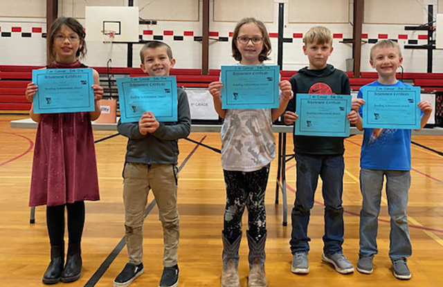 AR readers for 5th/6th grade at Prairie Elementary are from left Ayla