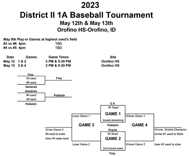 is the District Baseball bracket. Prairie will play Troy at 5:30 p.m.