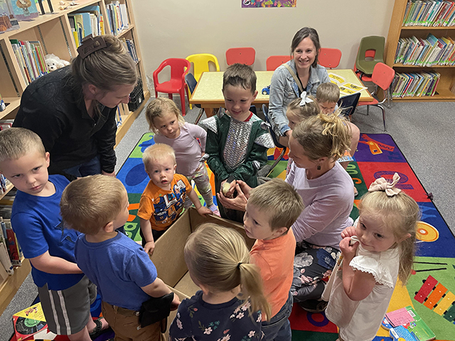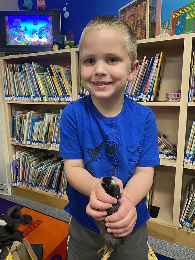 Tuesday morning library time featured learning all about baby chicks and holding them this week! Photos by Kari Holman. Click on each