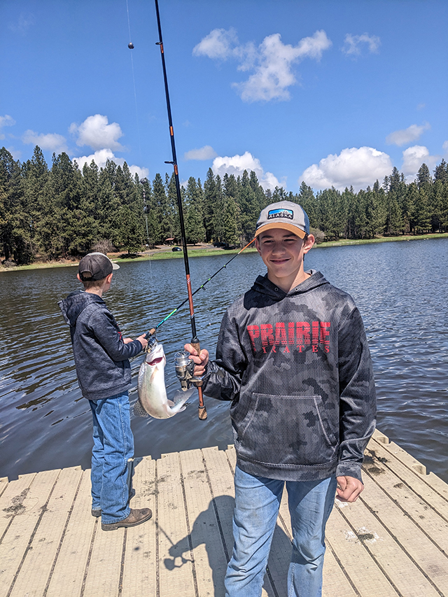 Prairie 6th grader shows off the fish he caught during the fishing