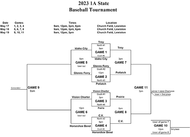 Shown is the state baseball bracket updated after the games of Wednesday, May 17. Prairie