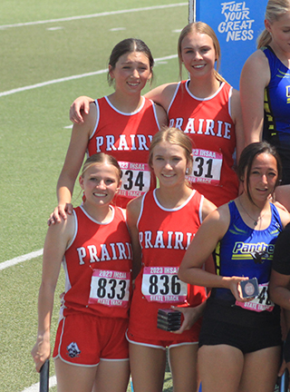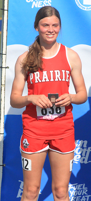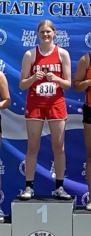 | State Track medalists Below are photos of all the Prairie state track medalists on the awards podium in the order they were awarded. ![]() Sage Elven placed first in the discus with a personal best mark that is just 3 inches shy of the school record. ![]() Shane Hanson finished 6th in the discus and earned a state medal. Photo by Daphne Hanson. ![]() Avery Riener received a 5th place medal in the triple jump with a personal best mark. Julia Rehder, Alli Geis, Sierra Oliver and Avery Riener placed 5th in the 4x200 relay. ![]() Krisint Wemhoff finished 3rd in the 100 meter dash. ![]() Trenton Lorentz finished 6th in the 100 meter dash. ![]() Sydney Shears finished 4th in the 800 in school record time. ![]() Julia Rehder, Alli Geis, Kristin Wemhoff and Sierra Oliver placed 2nd in the 4x100 relay in school record time. ![]() Trenton Lorentz, Bennie Elven, Noah Geis and Ben Secrest finished 6th int hr 4x100 relay. ![]() Kristin Wemhoff finished 4th in the 400 meter dash. ![]() Noah Geis finished 3rd in the 400 meter dash. ![]() Kristin Wemhoff finished 4th in the 200 meter dash. ![]() Trenton Lorentz finished 3rd in the 200 meter dash and broke his own school record. ![]() Sydney Shears finished 5th in the 1600 meter run. ![]() Sydney Shears, Alli Geis, Avery Riener and Sierra Oliver placed 5th in the 4x400 relay. All but Geis, who is a junior, are freshmen. ![]() Ben Secrest, Bennie Elven, Noah Geis and Trenton Lorentz placed 3rd in the 4x400 relay. |