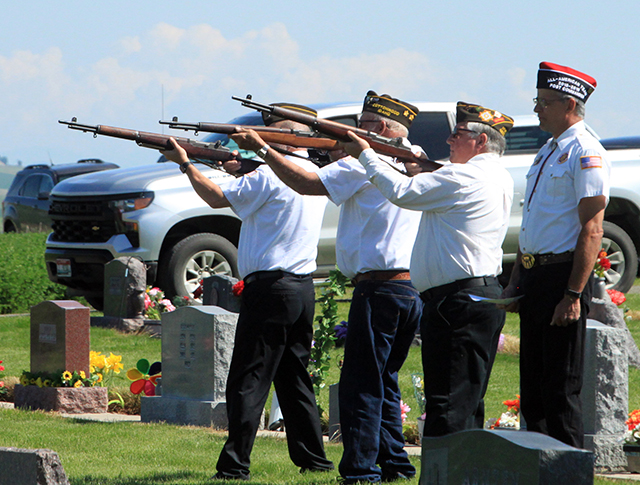 gun salute at the Greencreek Cemetery. David Frei, right, serves as