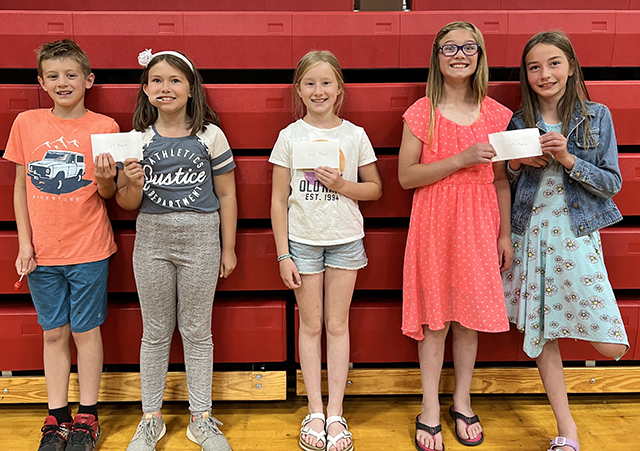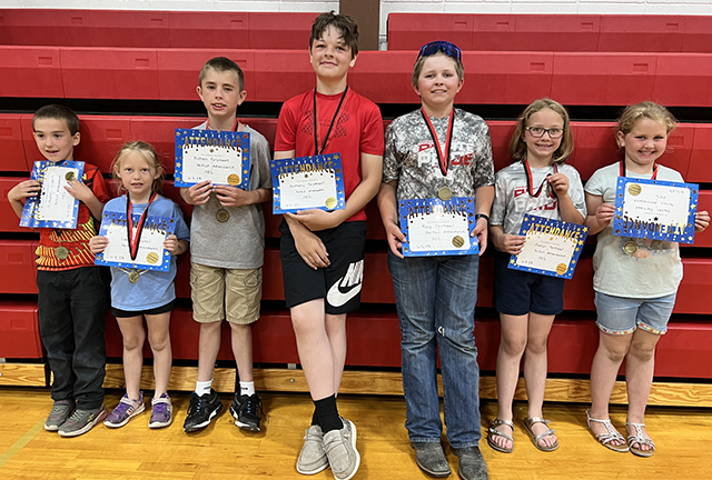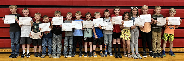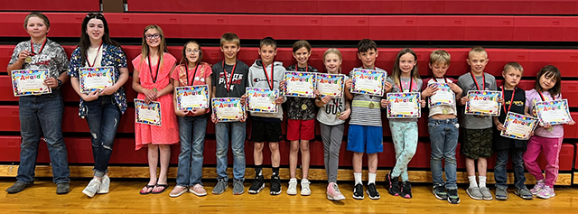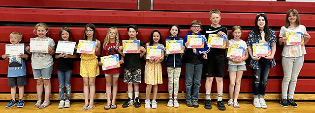 Prairie Elementary School Awards assembly ![]() Top Accelerated Reader winners in grades 2-4: L to R: Gunner Chandler, Leo Rehder, Evelyn Terhaar, Faye Kennedy, Mason Westhoff, Julia Schlader, Issac Riener, Branch Bennett, Ashlyn Hasenoehrl, Claire Michels, Zeke Henry, Grace Van Houten, Ruby Cash, Cameron McLeod, and David Quintal. Photo by Megan Rambo. ![]() ![]() Elementary Art award winners: L to R: Matt Nuxoll, Hazel Terhaar, Blair Forsmann, Ava NuxollWhitney Martin, Karver Downing, Lillia Kaschmitter, Lydia Francis, Brody Kalmbach, Rowan Elven, Mesa Graning, Winnie Secrest, and Jaylin Johnson. Photo by Megan Rambo. ![]() Citizenship Award winners from the end of year assembly at Prairie Elementary School. From left are Ray Terhaar, Winnie Secrest, Zita Schmidt, Madison Ross, Dawson Stewart, Andrew Riener, Harper Riener, Morgan Ruzicka, Cooper Lockett, Brynlee Johnson, Drew Forsmann, Brayker Forsmann, Daxton Heitman, and Becca Riener. Photo by Megan Rambo. ![]() Elementary PE awards: L to R: Trey Chandler, Brayker Forsmann, Drew Forsmann, Leo Rehder, MakaylinLerandeau, Amelia Rehder, Everett Schacher, Easton Bruegeman, Kinzie Coppernoll, Leighton Uhlenkott, Blake Stewart, Winnie Secrest and Bucky Harman. Photo by Megan Rambo. ![]() Prairie Elementary School Student Council 2022-23: L to R: Ben Schwartz-5th grade rep, Corbyn Tacke- 5th grade rep, Bekah Shears- President, Cooper Riener- Vice President, Henry Rehder- Secretary. Photo by Megan Rambo.
