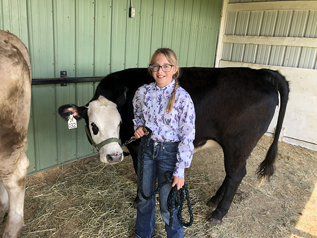 Mackenzie Holman and her heifer "Pumpkin" get ready to enter the ring. Photo by Susie Heckman.