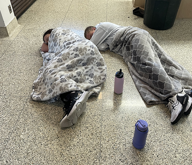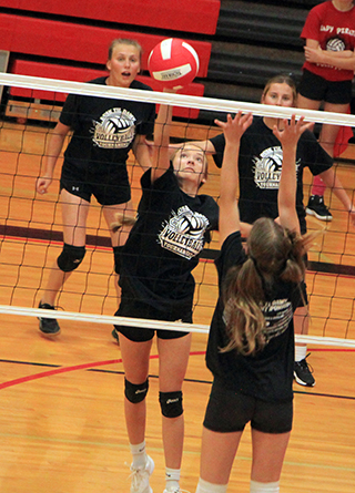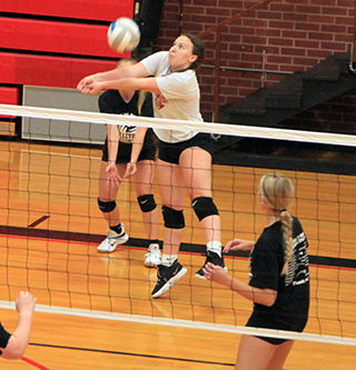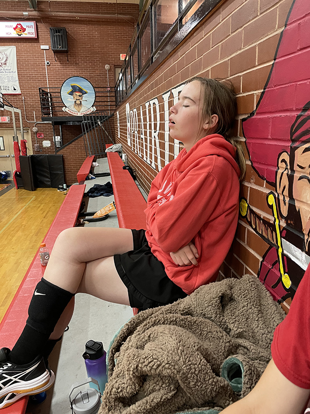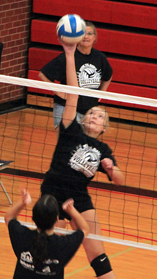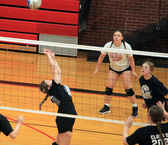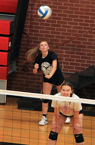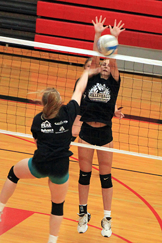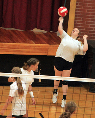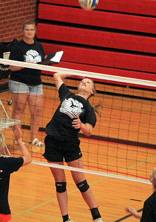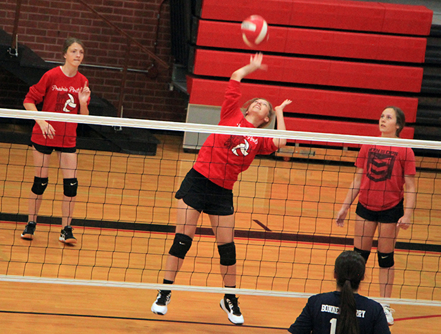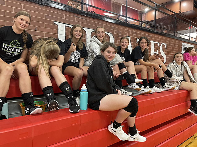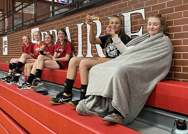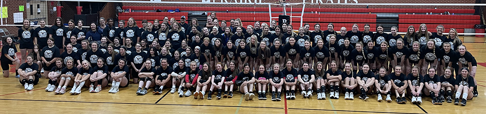 Prairie wins tournament Friday afternoon at 4:00pm, roughly 150 volleyball players gathered inside Prairie High School to compete in our annual Dusk til Dawn tournament. Tamden Pecarovich, with help from Ashlyn North, hosted our fourth annual dusk till Dawn volleyball tournament for their senior project. There was a 7 team varsity bracket and an 8 team JV bracket. Teams came from all around. In attendance were teams from Bonners Ferry, Asotin, Tri Valley, St. Maries, Lewiston, Centennial Baptist, Dayton, and Prairie. We had a round robin style tournament. Following the round robin, we ended with a single elimination bracket for each side. Play began at 4 PM and the single elimination bracket finished up approximately 11:30 AM on the 24th. In the single elimination bracket on the Varsity side of the gym, in round 1 Centennial Baptist and Asotin were eliminated. Round 2 saw St. Maries lose to Prairie while Tri Valley fell to Lewiston. The championship game was then played between Lewiston and Prairie. In a best two out of three volleyball match Prairie ended up the champions after winning 2 games! On the JV side of the net Dayton knocked out Prairie White in a first round loss. Dayton then went on to lose to Tri Valley while Prairie Red eliminated Prairie Black. The championship game was then played by Tri Valley and Prairie Red. Tri Valley became the champions with a two game win over Prairie Red. The tournament was a huge success. Tamden Pecarovich and Ashlyn North would like to send out a huge thank you to all those of you who sponsored the tournament and to everyone who volunteered to help and make this tournament happen. It couldn’t have happened without everybody’s support. ![]() Shown are all the competitors in t-shirts provided to all competitors. Several of the teams wound up using the shirts as their uniform tops. ![]() The Prairie varsity volleyball team hosted their annual Dusk ‘Til Dawn Tournament last Friday and Saturday and wound up winning the championship. They knocked off St. Maries in the semifinal and then beat Lewiston in the championship match. Pictured are front from left: Tamden Pecarovich, Taylor Riener, Kaylie Lockett and Sydney Shears. Back from left are Hailey Hanson, Lexi Schumacher, Sierra Oliver and Alli Geis. Photo by Julie Schumacher. ![]() Alli Geis stuffs a spike attempt by an Asotin player. ![]() The Prairie Red JV team wound up taking second place to Tri-Valley in the JV bracket. Here Halee Rowland hits the ball over the net against one of the two Bonners Ferry JV teams. ![]() Avery Riener spikes the ball for the Prairie Black JV team against Centennial Baptist. Also shown are Ellie Nuxoll and Ashlyn North. ![]() Bailey Key serves for the Prairie White JV team. ![]() Lexi Schumacher sets the ball for the Prairie varsity team. ![]() Sierra Oliver serves for the Prairie varsity. also shown is Kaylie Lockett. ![]() Sydney Shears spikes the ball for the Prairie varsity team. Behind her is Sierra Oliver. ![]() Tamden Pecarovich sets the ball for the Prairie varsity. Also shown are Kaylie Lockett and Hailey Hanson. ![]() Taylor Riener spikes the ball from the right side against Centennial Baptist. ![]() Alli Geis serves for the Prairie varsity. ![]() Hailey Hanson spikes the ball with Kaylie Lockett watching from behind. ![]() Libero Kaylie Lockett makes a pass. Also shown are Sierra Oliver behind Lockett and Taylor Riener at right. ![]() Lexi Schumacher spikes the ball. ![]() Aubree Rehder serves for the Prairie Black JV team. ![]() Ellie Nuxoll spikes the ball for the Prairie Black JV team. ![]() Maggie Nuxoll serves for the Prairie Red JV team. ![]() A pass by the Prairie White JV team. ![]() Prairie players getting some rest between matches early Saturday morning. Shown are Sydney Shears, Hailey Hanson, Lexi Schumacher, Alli Geis, Sierra Oliver, Aubree Rehder, Taylor Riener on her phone?, and Kaylie Lockett with Tamden Pecarovich in front. Photo by Julie Schumacher. ![]() Members of the Prairie Red and Black JV teams in between matches early in the morning. ![]() Kaylie Lockett and Alli Geis catch a few winks in the snack bar in the early morning hours. ![]() Lillianne Lustig manages to catch some shuteye in the bleachers. Above 4 photos provided by Julie Schumacher. PIRATES GIRLS VOLLEYBALL