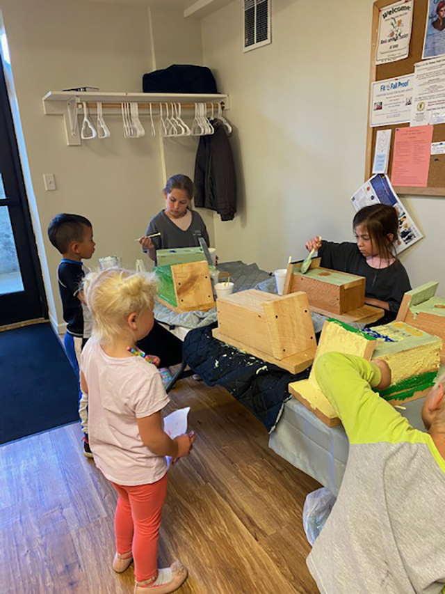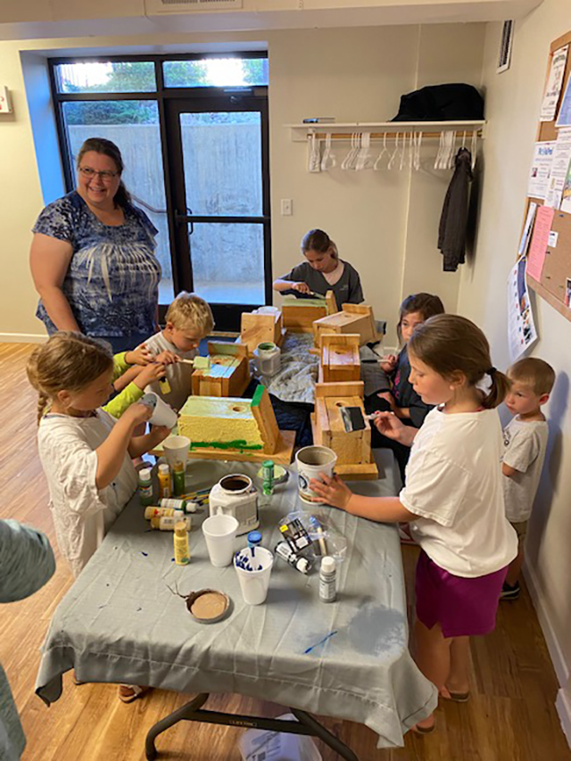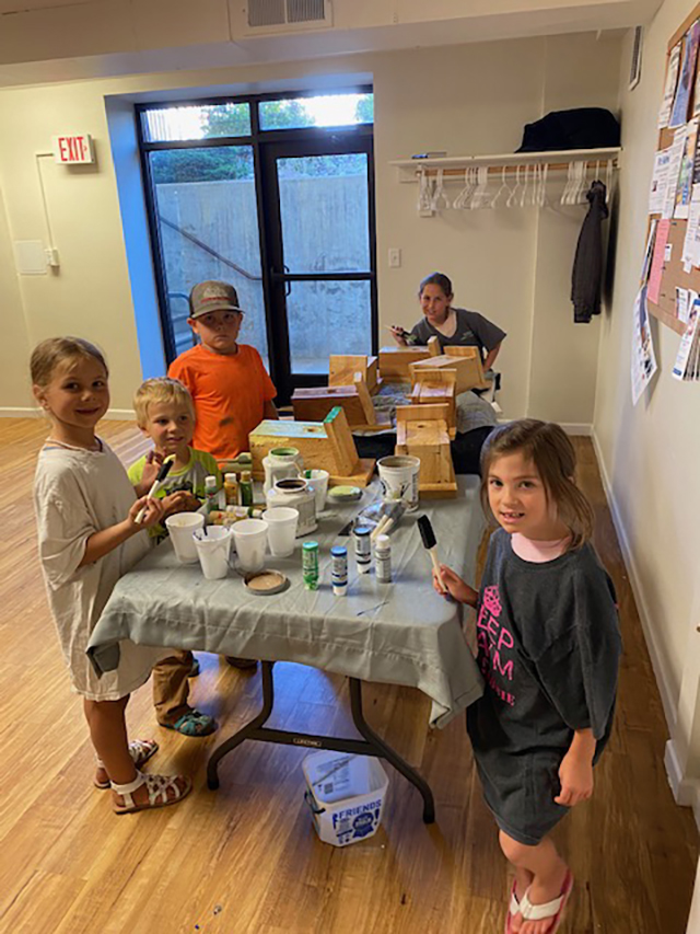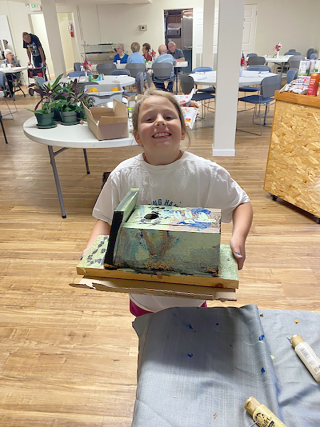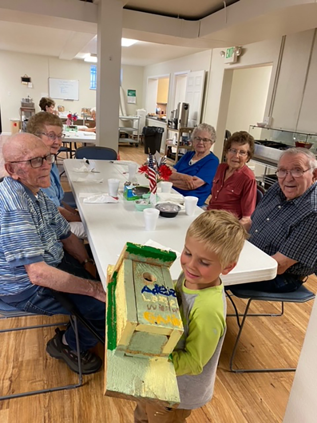 The youngsters at the Prairie Community Library Story Time last Tuesday, July 11 were able to paint bird houses donated by Del and Sheila Harris of Kendrick. They were also able to show off their creations to the senior citizen lunch crowd. The 5 photos on this page were submitted by Lynn Harris. Click on each photo for a larger view.