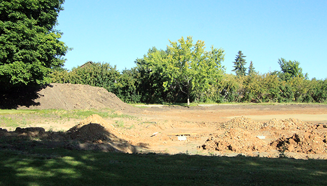 A couple of photos showing the excavation in the park for the new playground equipment and splash pad. Click on each photo for a larger view.