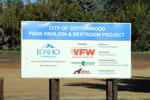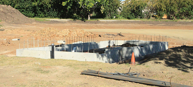 The project sign for the park pavilion and restroom project. The lower photo shows that the footings have been poured for the new Pavilion. Click on each photo for a larger view.