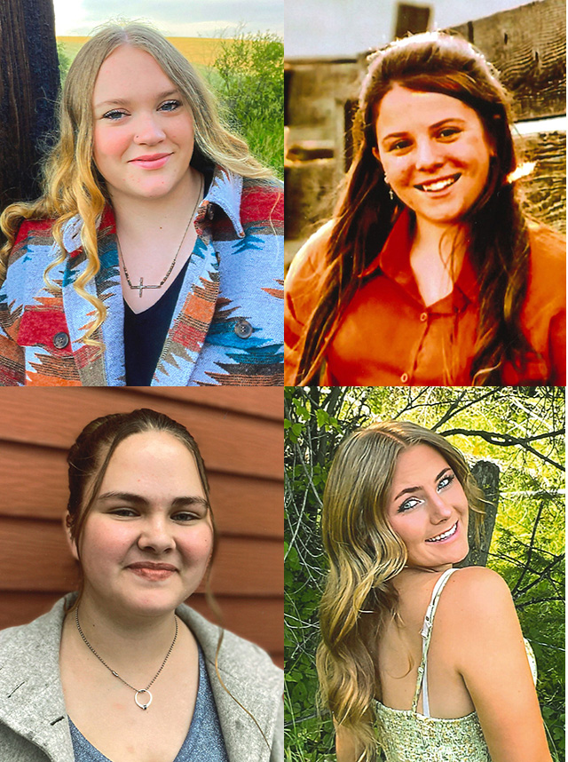 There are 4 young ladies who will compete for the 2024 Idaho County Fair Royalty. They are clockwise from top left: Bailey Key, Chayla Christopher, Kinzley Adams and Lydia Stowell. See article at left.. Click on the photo for a larger view.