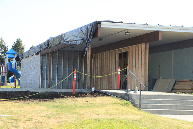 Construction continues at the Prairie Elementary School classroom addition with the first wall being framed in.