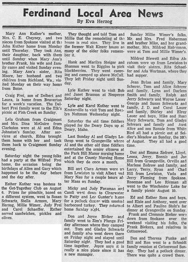 The above is Eva Herzog’s Ferdinand Area News column from August 14, 1975. Click