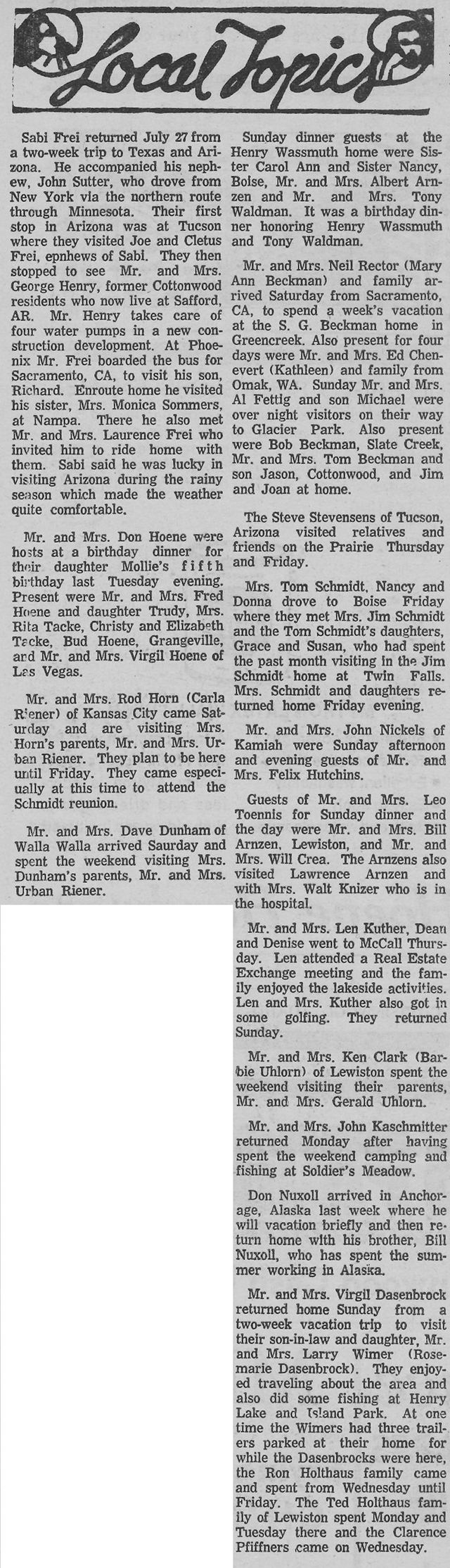 from Cottonwood were Mr. and Mrs. August Hoene, Mr. and Mrs. Clarence