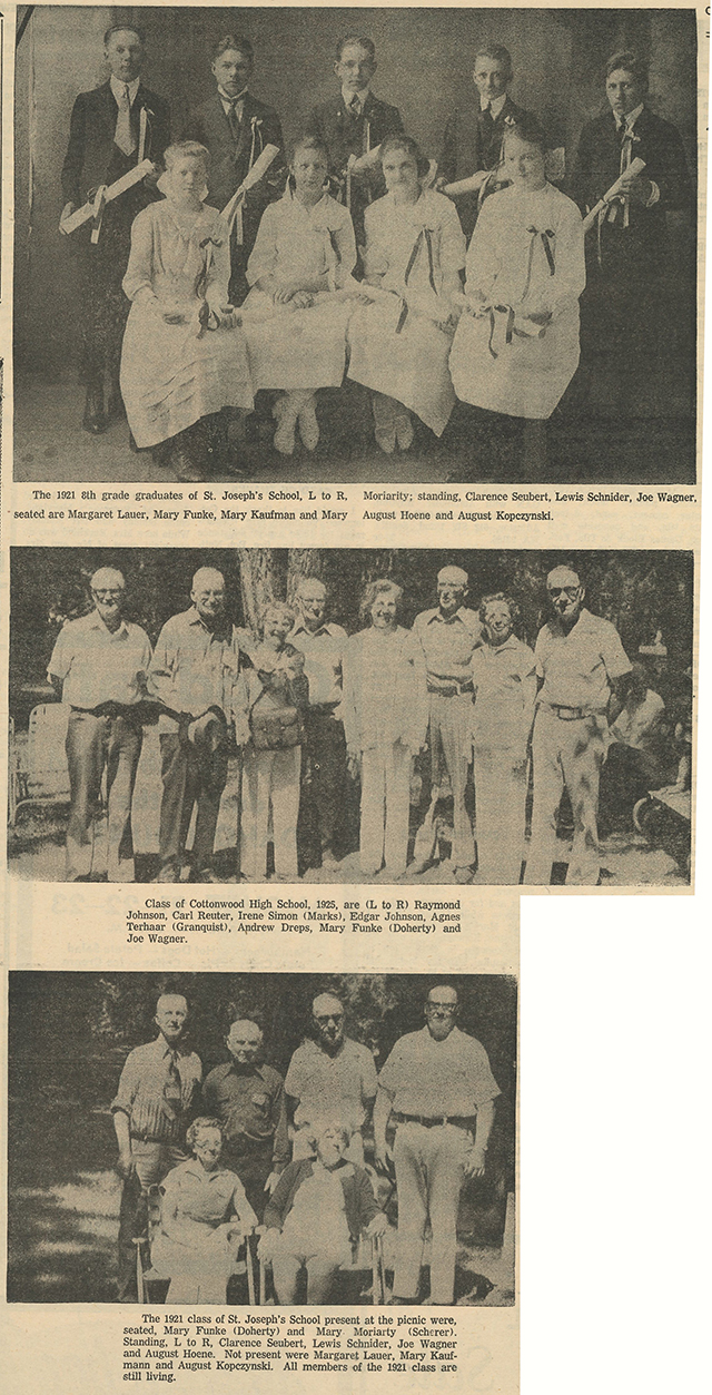 the 1921 class of 8th graders at St. Joseph’s School. Attending from