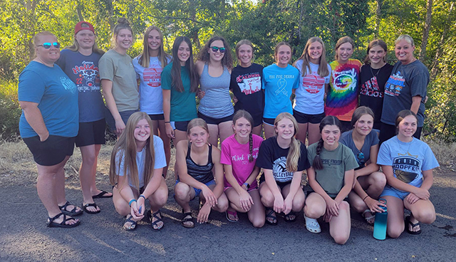 coach Lori Mader. Kneeling from left are Hailey Hanson, Maggie Nuxoll,