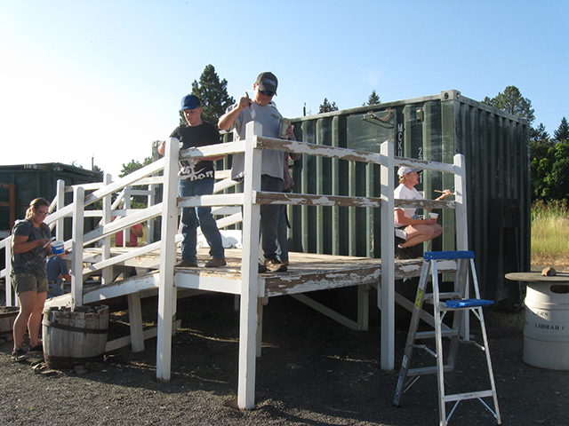 Greencreek Active Workers 4-H Club has done the same.) During the depths of last winter, the Keuterville group decided they would like to take on an extra community service project. Member Sam Rehder, who is the son of Amanda and Chris Rehder and is 12 years old, volunteered to take the lead on this and contacted Kristin Frish, the Cottonwood site manager. They quickly agreed that the two wooden platforms were in much need of attention. As the months passed, they collaborated on a plan for scraping and then painting the platforms. Among the challenges they dealt with were no electricity or water at the site, gathering all needed tools and supplies, and scheduling the volunteer kids/parents around weather and swimming lessons and vacations. The warm evening of July 20 saw 12 volunteers (7 kids and 5 parents) with scrapers descend on the two platforms. It took about 3.5 hours to complete the scraping. During this time, Sam accepted some good-natured joshing about whose big idea this was! Then, after a check of the weather forecast, two painting crews were scheduled for July 31 – one at 7 AM for the first coat and one at 7 PM for the second coat. The morning crew of 4 kids and 3 parents had some prep work to do before painting. A vacuum cleaner and a leaf-blower were used to remove any loose dirt and then all surfaces were wiped with damp rags to ensure that the paint would stick. After 3.5 hours and 4 whole gallons of paint/primer, the first coat was on. The evening crew was larger (13 kids and 4 parents) so the second coat went quickly with 1.5 gallons used in 2 hours. The kids then picked up the white paint scrapings to tidy the site. Thanks to all the 4-H members and their parents who played both large and small parts in this facelift. And thanks to our wonderful local Gem Builders Supply for discounting our paint (this was especially helpful because we used a lot more paint than anticipated!). Stop by and see the “new” platforms. ![]() Painting the first coat on the recycling platforms on the morning of July 31. From left are Amanda Rehder, Sam Rehder, Gus Hagen and Club Leader Cara Uhlenkott. Photo by Kristin Frish. ![]() Painting the second coat on the recycling platforms on the evening of July 31. From left are Mesa Graning and Amelia Rehder. Photo by Kristin Frish. |