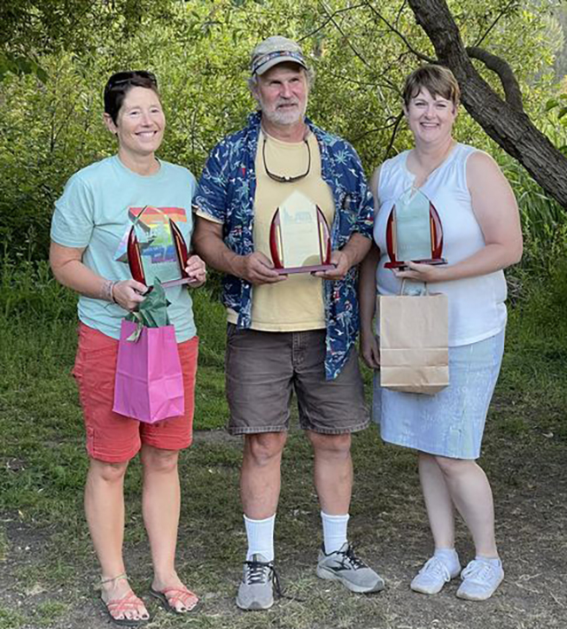 joins Dani Gouerber Moffit and Dick Leander. Pictured from left are