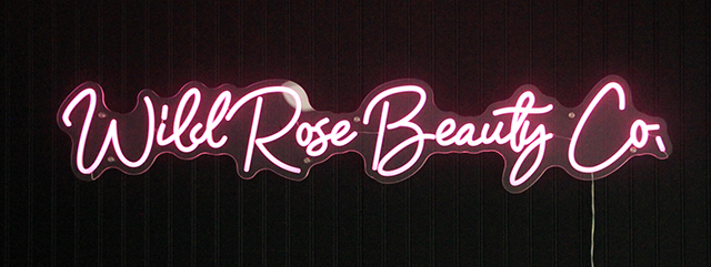 ![]() The neon Wild Rose Beauty Co. sign inside the shop. |