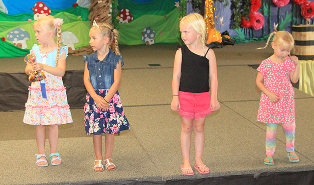 Shortest—1st Nori Holthaus daughter of Jonna Holthaus age 1 length of 4 inches (shortest pigtail of the day); 2nd Serenity Scovel daughter of Twila Scovel age 1 length of 5 inches; 3rd Addison Holthaus daughter of Kristy and Kyle Holthaus age 2 length of 6 inches