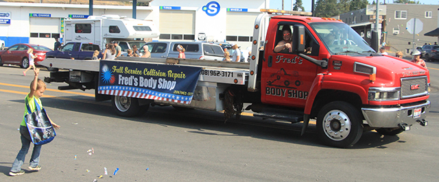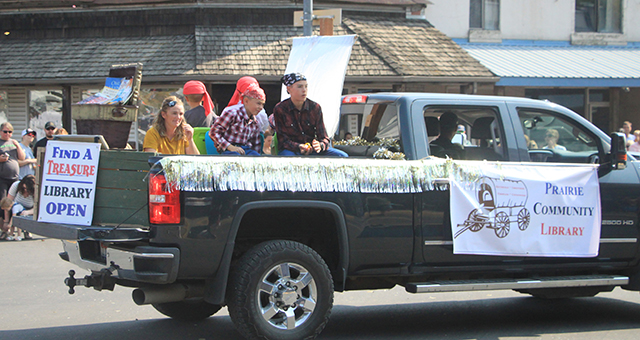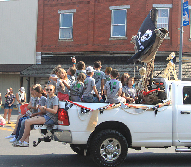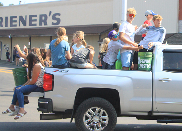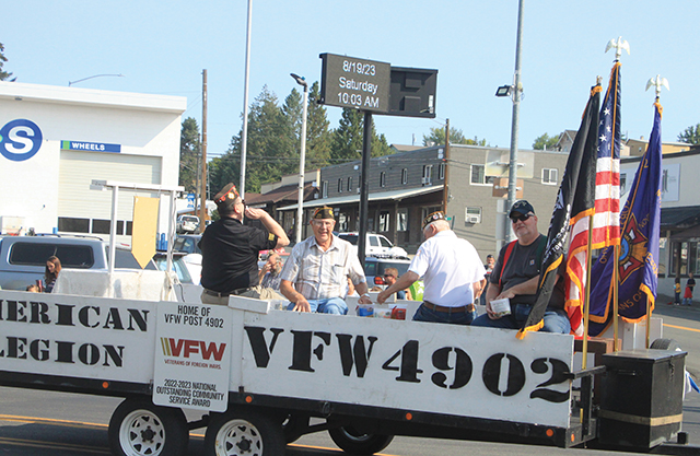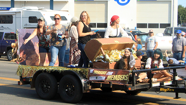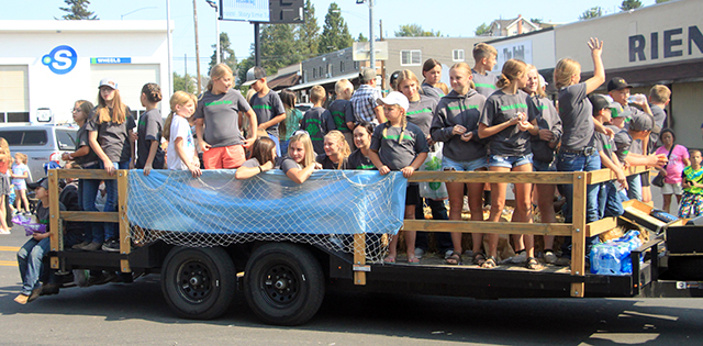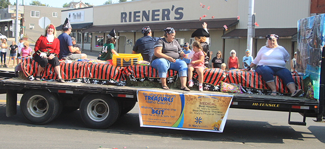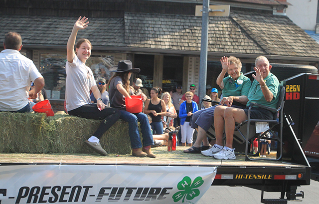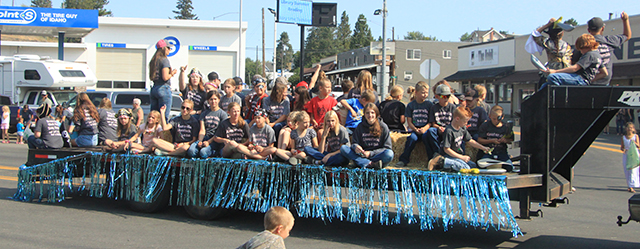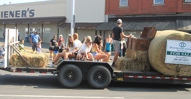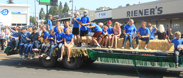 | Parade winners listed Commercial entries 1st St. Mary's Health 2nd Cottonwood Community Federal Credit Union and 3nd Fred's Body Shop Non-profit 1st VFW; 2nd Eric and Joyce Forsmann Family Collection 3nd Riggins Canyon 4-H club Royalty 1st Idaho County Fair Royalty 2023 2nd Lewis County royalty 3nd 2024 Idaho County Fair Royalty Equestrian entries 1st Cottonwood Riding Club 2nd Grangeville Triple Bar Drill team. ![]() Sally Rehder sang the National Anthem to open the parade while her husband Jim and son Jon shared announcing duties. ![]() The VFW float was the non-profit 1st place winner. When they got to the announcer's stand post commander Dave Frei asked any veterans in the crowd to join them on the float. ![]() Grand Marshals Jim and Kathleen Vopat rode on a flat bed trailer with many of their family members. ![]() The St. Mary's Health float was the commercial division first place winner. ![]() Cottonwood Credit Union had the 2nd place commercial entry. ![]() Fred's Body Shop was the 3rd place commercial entry. ![]() The Lewis County Fair Royalty float took third place among royalty entries. ![]() Cottonwood Riding Club took first place among equestrian entries. ![]() Triple Bar Drill team was second among equestrian entries. ![]() The Awana Clubs parade entry. ![]() Youngsters chase after candy thrown by the parade entrants. Several came prepared with bags. ![]() Part of Double Drop Outdoors parade entry. ![]() ![]() ![]() ![]() ![]() Several 4-H clubs had parade entries. From top down are Keuterville Livestock, Greencreek Active Workers, Cottonwood Saddliers, Fenn Livestock and Riggins Canyon. ![]() The Salmon River FFA entry. They were anew chapter this year. ![]() Hayden Outdoors Real Estate of Cottonwood. ![]() The Prairie Community Library entry. |
