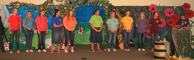 Communications & Leather Expressive Arts Division: 1. Alaina Lustig, Leather; 2. Kashlynn Funderburg, Leather Environmental Education & Earth Sciences: 1. Halee Rowland, Hiking Science & Technology Division: 1. Matt Frei, Custom weld bench; 2. Brooke Bennett, Welded Ranch Sign ![]() Members of the 4-H Fashion Board line up on stage prior to the 4-H Fashion Show. They are (not in order) Molly Fowler, Josie Graves, Bailey Key, Miranda Klapprich, Alaina Lustig, Ella McLeod, Chloe Rowland, Halee Rowland, Mikayla Rowland, Bethany Stowell, Lydia Stowell and Catherine Seubert. ![]() The opening production number at the 4-H Fashion Show that featured all of the models. ![]() Mikayla Rowland and Ella McLeod during the constructed clothing portion of the show. Rowland swept every top award in the intermediate division and added the Candace Johnston Top Foods Award. ![]() The first models to appear during the fashion show were Mya Meyers, Laura Nuxoll and Hazel Terhaar. |