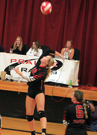 dominated the Pirates in all 3 games. Prairie’s only lead of the night came on the first point of the game as Geis scored on a block for a 1-0 lead.Troy scored 2 straight points on a kill and an ace. Prairie tied it on a kill by Riener but then Troy scored 3 straight. Prairie got within 4-5 on an ace by Geis and 5-6 on a bad serve by Troy. After that Troy took control scoring 5 straight points. Lexi Schumacher served 2 aces to get Prairie back within 3 at 8-11 but then Troy answered with 6 straight to take an 8-17 lead. Kylie Schumacher scored a sideout kill and Lockett served 2 aces to cut the lead to 11-17 but Troy then scored a sideout and served out the game. Troy scored the first 2 points of the second game and the last time Prairi was close was at 4-5 after a free ball kill by Pecarovich. Troy scored 10 of the next 12 points and Prairie did not score a point while serving the rest of the game. Troy jumped out to leads of 0-4, 1-7 and 3-10 in the third game. Prairie’s only service point came on a block by Kylie Schumacher with Geis serving. Prairie’s only other serving point of the game came on an ace by Lockett that made it 7-20. Prairie’s only point the rest of the game came on a missed serve by Troy. Geis had 5 kills in the match including a block. She also had 1 ace. Kylie Schumacher had 3 kills including 1 block. Pecarovich had 2 kills and 9 assists. Riener had 2 kills. Lexi Schumacher had 1 kill, 1 assist and 2 aces. Lockett had 3 aces. Oliver had 1 assist. Prairie is now 1-1 overall and in league play. The JV team won their match 21-25, 25-23, 15-6. The first game started like it was going to be a lopsided match in favor of Troy as the Trojans jumped out to a 2-10 lead. Troy held the lead by as many as 11 points at 9-20 and 11-22 before Riener scored a sideout kill to make it 12-22 and send Erica Schlader to the service line. Schlader served 5 aces with Troy called for a rotation violation and Nuxoll adding 2 kills as Prairie got within 2 at 20-22. Prairie wound up losing the game by 4 but that big serving run gave them some confidence that they could play with Troy going into the second game. Rehder scored a sideout kill to start the second game and a kill each by Hanson and Rehder gave Prairie a 3-0 lead. Troy came back to tie it at 5-5 but a sideout kill by Breanne Schwartz gave Prairie back the lead. Hanson then served 4 straight aces for a 10-5 lead. Prairie held the lead the rest of the game although it got tight at the finish. After a 3-point service run by Rehder Prairie led 22-14. After 2 straight sideouts, Hanson served an ace for a 24-15 lead. Troy then scored a sideout and had a big service run to cut the lead down to 24-23 before Prairie was able to score the game-winning point. In the deciding third game Prairie took a 4-1 lead as Rehder served 2 aces. 3 kills by Nuxoll and an ace by Schlader helped Prairie keep the lead at about 4 points. After Troy cut the lead to 9-6, Nuxoll scored a sideout kill and then went to the service line. She then served out the match. She had 2 aces. Hanson scored a kill and then Nuxoll served 2 more aces to end the match. ![]() Kylie Schumacher blocks a spike attempt by Potlatch. ![]() Lexi Schumacher goes up for a spike against Potlatch. ![]() Tamden Pecarovich sets the ball against Potlatch. Also shown is Taylor Riener. ![]() Taylor Riener goes up for a spike against Potlatch. Also shown is Tamden Pecarovich. ![]() Alli Geis serves the ball against Potlatch. ![]() Ember Martin serves against Potlatch. ![]() Kaylie Lockett passes the ball against Potlatch as Lexi Schumacher looks on. ![]() Kylie Schumacher winds up for a spike against Potlatch. Also shown is Tamden Pecarovich. ![]() Lexi Schumacher goes up for a spike against Troy. AUGUST
