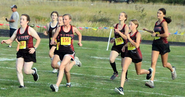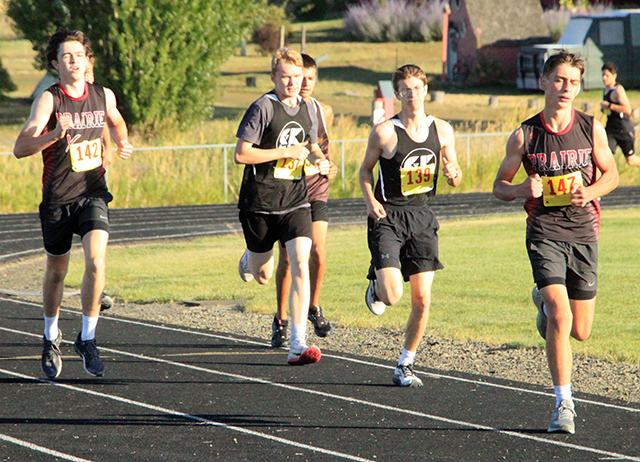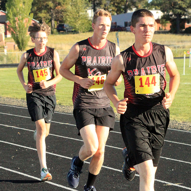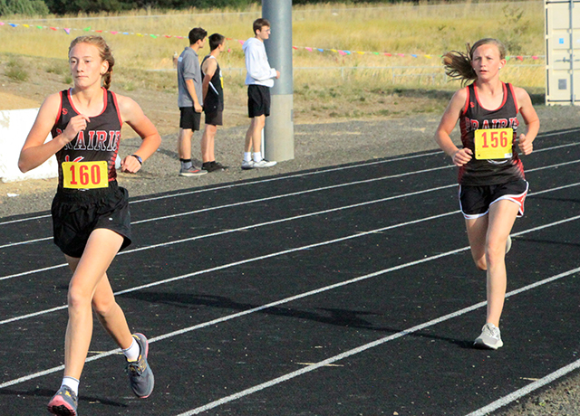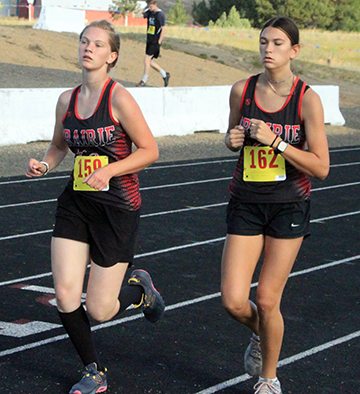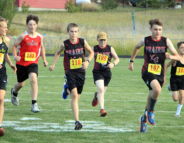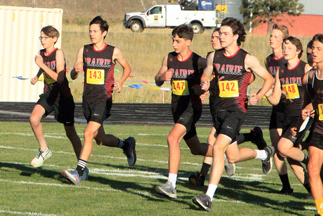 Prairie hosts cross country meet Prairie had 3 girls finish in the top 5 at the Prairie Invite Cross Country Meet, including Aubree Geis, who finished first at 23:14.8. The meet was held Wednesday, Sept. 13 at the Prairie Football and Track & Field Complex. Evelyn Gehring was third in 24:00.9 while Olivia Uhlenkott was 5th in 25:46.1. Natalie Goeckner was 7th in 28:08.9 while Callie Remacle was 9th in 30:07.5 and Alaina Lustig was 10th in 31:09.2. Prairie had the only full girls team competing. The boys team had 2 top 10 finishers in Ben Secrest, who was third in 20:35.4 and Jackson Enneking, who was 10th in 22:18.7. Chase Vonbargen was running in first when his knee acted up and forced him out of the race. Max Rehder was 17th in 25:23.6 while Dylan Klapprich was 18th in 25:59.5. Zane Uptmor was 19th in 27:18.8 and Landon Riener was 20th in 27:28.2. Timberline edged out Prairie 25-31 in the team competition. Prairie had the top two finishers in the Jr. High boys race as Phineas Fitch was 1st in 9:50.8 and Matthew Jones was 2nd in 11:02.2. Kade Hanson placed 7th in 12:51.5 and new member of the team, Anthony Forsmann, was 13th in 16:24.6. ![]() The start of the high school girls race. Prairie runners from left are Natalie Goeckner, Evelyn Gehring, Olivia Uhlenkott, Alaina Lustig, Aubree Geis and Callie Remacle. ![]() The start of the high school boys race. Fromleft are Landon Riener, Jackson Enneking, Chase VonBargen, Dylan Klapprich, Ben Secrest, Zane Uptmor and Max Rehder. ![]() The start of the Junior High race. From left are Anthony Forsmann (they couldn't find any more of the black jerseys so he's wearing an older red one), Matthew Jones, Kade Hanson and Phineas Fitch. ![]() Aubree Geis is about to hit the track for a final lap before the finish in first place. She held off the Timberline runner to finish first. ![]() Ben Secrest, left, and Chase Vonbargen early in the race. VonBargen was leading when he had an issue with his knee and had to drop out. ![]() ![]() Jackson Enneking and Max Rehder. ![]() Landon Riener, Zane Uptmor and Dylan Klapprich early in the race. ![]() Evelyn Gehring and Olivia Uhlenkott early in the race. ![]() Alaina Lustig and Callie Remacle. ![]() Natalie Goeckner. ![]() ![]() Phineas Fitch, left, and Matthew Jones finished 1-2 in the Jr. High race. ![]() ![]() Kade Hanson and Anthony Forsmann in the Jr. High race. September 23-Bob Firman Invitational, Eagle Island State Park, 8:45 a.m.26-Scenic 6 Invitational at Potlatch--Cancelled October 7-Inland Empire Challenge, Lewiston Orchards, 9 a.m.10-Logos Invitational at Moscow 13-Run Around the Lake at Winchester Lake State Park, 3 p.m. 19-District meet, Lewiston Orchards 28-State meet at Pocatello |