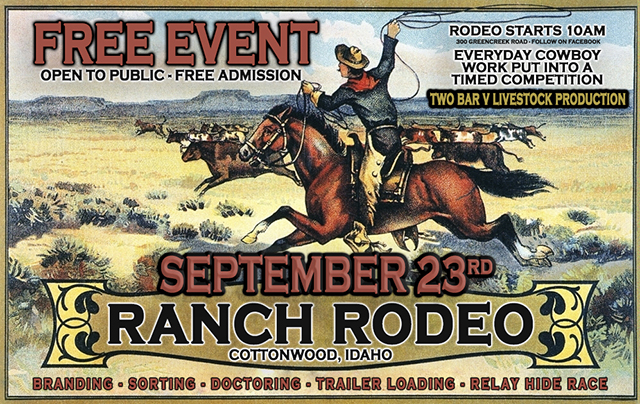 The annual Ranch Rodeo put on by Two Bar V Livestock at their arena just east of Cottonwood on Greencreek Road is set for this Saturday, Sept. 23. Events start at 10 a.m. and the event is open to the public with free admission. Everyday cowboy work is put into timed competitions. Events include branding, sorting, doctoring, trailer loading and a relay hide race. Concessions are available. ![]() |