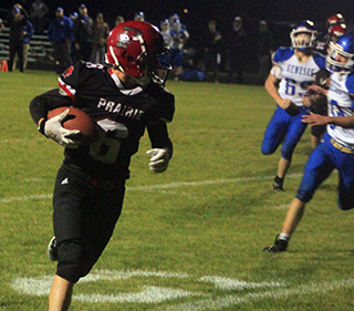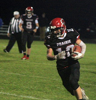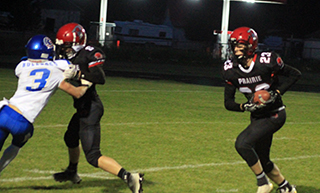 The Prairie football team dominated the Genesee Bulldogs for a 48-0 Homecoming victory Friday, Sept. 22 at Cottonwood. ![]() The Pirate defense completely shut down Genesee’s offense as the Bulldogs managed just 3 first down in the entire game and wound up with a net -59 yards of offense. They crossed the 50 yard line just once and never got past the Prairie 45 yard line. Prairie kicked off to start the game and Genesee picked up one of their 3 first downs on the first play from scrimmage. After that a 5 yard loss on a running play and a loss of 13 when Bennie Elven sacked Genesee quarterback Jackson Banks. Genesee then tried a fake punt but picked up just 3 yards giving Prairie the ball at the Genesee 30. Prairie needed just 1 play to score as quarterback Noah Behler passed deep over the middle to Elven for a touchdown. Behler then passed to Levi Gehring for the 2-point conversion to give Prairie an 8-0 lead. Genesee’s second possession lasted just 2 plays. After a 3 yard loss on a run, the center snap sailed over Banks’ head and Ethan VonBargen recovered the ball at the Genesee 16. Prairie again needed just 1 play to score as Behler found Blake Bunce open at the pylon for a 16 yard touchdown. Behler ran in the 2-pointer for a 16-0 Prairie lead. Genesee got a good kickoff return and started at their 37. 3 plays netted -2 yards. Prairie then gave them 10 yards on consecutive penalties setting up fourth and 2 at the 45. Another bad snap cost the Bulldogs 17 yards and even though Banks recovered, Prairie took over on downs at the Genesee 28. Prairie went to the run this time with Chris Schumacher carrying 3 straight times for 6, 8 and 5 yards to the Genesee 9. Behler then ran a keeper around the right end for a touchdown. Behler completed a shovel pass to Schumacher for the 2-point conversion to put the Pirates up 24-0 with 6:21 still left in the first quarter. For Genesee it was 3 plays and punt on their next possession as they faced fourth and 15 at their own 18. The punt traveled 25 yards to the 41 where Gehring returned it 4 yards to the Genesee 37. Prairie needed 3 plays to score this time. Behler passed to VonBargen for 7 yards then Schumacher ran up the middle for 6 for a first down at the 24. On the next play Schumacher caught a short pass on the left side and took the ball to the end zone, breaking a couple of tackle attempts along the way. Behler ran in the 2-pointer to make it 32-0 with 1:45 left in the first quarter. Genesee picked up their second first down of the game on their next possession but then Banks was tackled for a 6 yard loss by Elven and a fumbled handoff wound up costing Genesee another 8 yards. After an incomplete pass Genesee punted again. The punt traveled 36 yards to the Prairie 30 with Gehring making a 14 yard return to the Prairie 44. Prairie need 9 plays to score this time with Schumacher running twice for 10 and 13 yards as Prairie moved the ball to the 11. A fumble led to a 5 yard loss. After a 3 yard pass completion from Behler to Elven, Prairie lost another 6 yards on another fumble. Facing fourth and 18 at the 19 yard line, Behler passed to Elven in the corner of the end zone for a touchdown. Behler passed to Gehring for the 2-pointer to give Prairie a 40-0 lead with 5:54 left in the half. Genesee was forced to punt again but the punt traveled just 13 yards before going out of bounds. Prairie took over at the Genesee 48. 3 plays later a fumble was recovered by Genesee at their own 38. The Bulldogs converted a fourth and 12 when Banks ran the ball for 15 yards to the Prairie 45. That was the only time the Bulldogs crossed midfield. A bad snap cost them 6 yards back to their own 49 and the half ended on a run that was stopped at the Prairie 45. The entire second half was played with a full running clock that stopped only when a timeout was called. Prairie received the second half kickoff with Gehring returning the ball 12 yards to the Prairie 37. This was the Gehring possession as he carried the ball 3 times for a net 4 yards then caught a pass for 25 yards to convert a fourth and 6. He ran for 11 yards and then 7 yards to the Genesee 16. Behler ran 6 yards to set up first and goal at the 10 but Prairie fumbled the ball away on the next play with Genesee recovering at the 18. Genesee was forced to punt again on a fourth and 21 from their own 7 with the punt traveling just 15 yards as Prairie took over at the 22. Gehring ran for 8 and then 5 yards to set up first and goal at the 9. He picked up 2 yards then Behler ran a keeper for 7 yards and what turned out to be the game’s final touchdown. Behler passed to Gehring for the 2-pointer to make it 48-0 with the quarter running out on the conversion attempt. Prairie kicked off to start the fourth quarter with Genesee taking over on their own 30. They picked up 1 yard on a run and then had 3 straight incompletions to turn the ball over on downs at the 41. Prairie sent the JV offense out and although Payton Stamper picked up 12 yards on a pair of runs, penalties led to Prairie turning the ball over on downs at the 44. The big penalty was a holding penalty that wiped out a 20 yard gain by Stamper. Another bad snap cost Genesee 16 yards and then Lane Mader and Jake Quintal combined on a sack of Banks for an 8 yard loss. A pair of incomplete passes turned the ball back to Prairie at the 20. Levi McElroy then took a knee to run out the clock. Prairie had 126 yards rushing on 26 attempts led by Schumacher who had 46 yards on 8 carries. Behler had 36 on 5 carries and Gehring had 32 yards on 11 carries. Behler completed 8 of 10 passes for 128 yards with Elven catching 4 for 56. Gehring caught 1 for 25, Schumacher 1 for 24, Bunce 1 for 16 and VonBargen 1 for 7. Genesee had -91 yards rushing on 23 attempts. 16 for their 23 attempts went for negative yardage. Banks completed 3 of 23 pass attempts for 32 yards. Cameron Holmes caught 2 for 21 and Noah Bollman caught 1 for 11 yards. Prairie is now 3-1 on the season