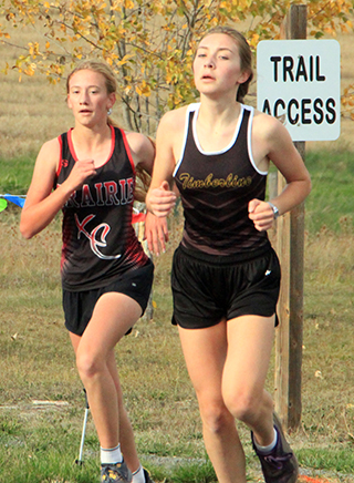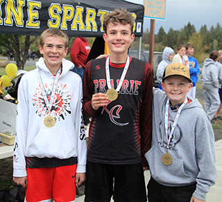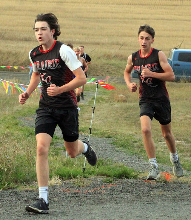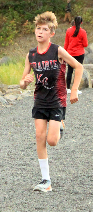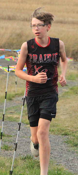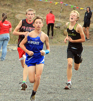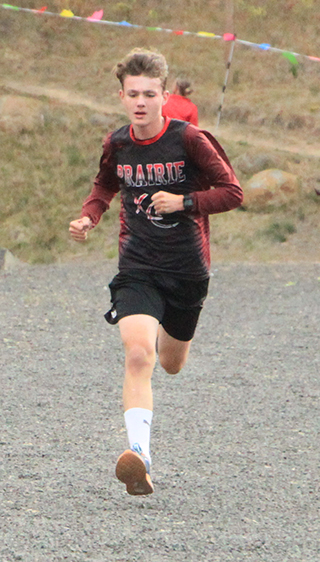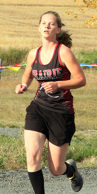 in the junior high boys race in 11:09.The top 10 finishers received medals as Natalie Goeckner also received a medal for finishing 7th in the high school girls race with a time of 26:37. Callie Remacle was just outside the top 10 as she placed 12th in 28:00. Four of the five Prairie runners in the junior high boys race received medals as Matthew Jones was 2nd in 12:14 after passing a couple of runners in the final 200 meters. Gabe Severns was 7th in 13:27 and Kade Hanson was 10th in 13:58. Anthony Forsmann finished 18th in 18:56. As a team the junior high boys placed first with 26 points, edging out host Timberline by 4 points. Earning medals in the high school boys race were Chase VonBargen in 4th in 19.28 and Ben Secrest in 6th in 19:46. Dylan Klapprich was 17th in 24:08 and Landon Riener was 21st in 24:51. Several high school boys and girls runners did not compete due to Homecoming activities. Bob Firman Invitational The Bob Firman Invitational is a huge meet with teams from all classifications all over the state competing.Prairie’s runners competed in the JV (M-Z) races. As in runners from schools starting with the letter M to Z. There were 396 runners in the boys race with VonBargen as Prairie’s top finisher in 121st with a time of 20:21.0. Secrest was 184th in 21:08.5. Jackson Enneking was 225th in 21:40.7. Max Rehder was 332nd in 24:16.4. Zane Uptmor was 350th in 25:18.8. Klapprich was 353rd in 25:27.3. Landon Riener was 367th in 26:16.6. As a team Prairie placed 26th out of 32 teams with 759 points. There were 138 runners in the girls race with Elizabeth Severns finishing 87th in 26:43.4 as the top finisher for Prairie. Remacle was 107th in 28:20.0. Goeckner was 108th in 28:20.3. Alaina Lustig was 120th in 29:56.0. ![]() Top 10 finishers received medals at the Spartan Invite. Evelyn Gehring, left, took first and received a plaque while Natalie Goeckner finished 7th. ![]() Prairie had 4 runners finish in the top 10 of the junior high race. Matthew Jones, left, was 2nd. Phineas Fitch, middle, was first and Kade Hanson, right, was 10th. Gabe Severns, not pictured, was 7th. ![]() The start of the boys high school race. From left are Landon Riener, Dylan Klapprich, Ben Secrest and Chase VonBargen. Secrest and VonBargen earned medals for finishing in 6th and 4th respectively. Our photo of them with the medals turned out to be out of focus. ![]() The start of the girls high school race. From left are Natalie Goeckner, Evelyn Gehring, Callie Remacle and Alaina Lustig. ![]() The start of the Junior High boys race. From left are Kade Hanson, Phineas Fitch, Gabe Severns, Matthew Jones and Anthony Forsmann. ![]() This is the point where Evelyn Gehring took over first place in the high school girls race. ![]() Natalie Goeckner ![]() ![]() Callie Remacle and Alaina Lustig ![]() Ben Secrest and Cahse VonBargen.. During the loop around the reservoir VonBargen would pass Secrest and wind up 2 places ahead of him. ![]() ![]() Dylan Klapprich and Landon Riener. ![]() Phineas Fitch crosses the dike in first place, well ahead of the group below. ![]() Matthew Jones was in fourth at this point but passed both runners shown in the final 200 meters to finish second behind teammate Phineas Fitch. ![]() Landon Riener, Zane Uptmor and Dylan Klapprich early in the race. ![]() ![]() Kade Hanson and Anthony Forsmann. September 23-Bob Firman Invitational, Eagle Island State Park, 8:45 a.m.26-Scenic 6 Invitational at Potlatch--Cancelled 26-Junior High team at Cub Invite, Moscow October 7-Inland Empire Challenge, Lewiston Orchards, 9 a.m.10-Logos Invitational at Moscow 13-Run Around the Lake at Winchester Lake State Park, 3 p.m. 19-District meet, Lewiston Orchards 28-State meet at Pocatello |