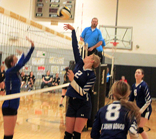 Lady Patriots 3rd at Timberline Tournament, lose at Kendrick The St. John Bosco Lady Patriots won 1 of 4 matches at the Timberline Tournament Saturday, Sept. 23, and then lost a league match at Kendrick Monday, Sept. 25,19-25, 14-25, 9-25. Timberline Tournament They opened play at the Timberline Tournament against the Orofino JV team and won in straight sets 25-22, 25-19.![]() They jumped out to a 4-1 lead then Orofino rallied to take the lead and Orofino either led or it was tied until Julia Wassmuth took over at the service line after a free ball by Sarah Waters scored a sideout to tie it at 17. Wassmuth served and ace for the lead. Waters slammed one off of an Orofino block for a kill and then Wassmuth added 2 more aces for a 21-17 lead. After 3 straight sideouts Orofino served and ace to pull within 2. Back to back kills by Waters put Bosco at game point. After a sideout and an ace by Orofino, Waters scored the game winning kill. Noelle Chmelik served Bosco to a 4-0 lead in the second game with 3 aces plus a kill by Wassmuth. Orofino came back with 4 straight to tie it but 3 aces by Rachel Sonnen put Bosco back on top by 4 at 8-4. They then held the lead until Orofino came back to take their first lead of the match at 16-17. Bosco took the lead back on a free ball by Savannah Perrin. Bosco led by 3 at 20-17 before Orofino rallied to cut the lead to 20-19 before missing a serve. Maleah Cummings, who had struggled to get a serve in play earlier in the match, found her range and served 4 straight aces to give the Patriots the match. In their second round match they faced league foe Highland and lost the match 16-25, 25-18, 11-15. In their final pool play match they faced Lapwai and lost the match 21-25, 25-11, 17-19. That wound up being the pool championship match as Lapwai finished 3-0 to win the pool and although Bosco was 1-2, so were Highland and the Orofino JV. Bosco’s tiebreaker that gave them second was the fact they beat Lapwai one game giving Lapwai their only set loss in pool play. Bosco wound up going 4-4 in games while Highland was 2-5 and Orofino was 2-4. In bracket play they faced Prairie, the champion from the other pool and lost 26-28, 16-25, giving the Pirates all they wanted in a loss that ended their day. In the opening game Prairie jumped out to a lead of 7-15 and led 22-15 before Bosco started their rally. After a sideout, Sonnen served 3 points to get Bosco within 3 at 19-22. Prairie got to game point at 20-24 when Waters scored a kill to send herself to the service line. She served Bosco into a 24-24 tie as Sonnen scored 2 kills and Wassmuth another. A missed serve gave Prairie another game-point chance but a kill by Wassmuth tied it at 25. A kill by Chmelik gave Bosco a game point chance at 25-26 but a missed serve tied it. Prairie then scored the next two points to win the game. In the second game Bosco’s only lead came at 1-0 after a kill by Chmelik. A missed served led to 4 straight by Prairie and the Pirates eventually led 9-16 . Bosco got back within 3 at 15-18 after an ace by Catherine Seubert but Prairie then scored a sideout and 5 straight to get to match point at 15-24. Seubert score a sideout kill but Bosco missed their next serve to give the match to Prairie. At Kendrick With the 3 set loss at Kendrick Monday, the Patriots are now 4-6 overall and 2-3 in league play.Kendrick also won the JV match 0 games to 2. ![]() Catherine Seubert passes the ball at the Timberline Tournament. Also shown are Julia Wassmuth and Vivian Dahlsrud. ![]() Sarah Waters goes up for a spike at the Timberline tournament. Also shown are Rachel Sonnen, Julia Wassmuth and Noelle Chmelik. ![]() Noelle Chmelik sets the ball at the Timberline Tournament. ![]() Julia Wassmuth tipes the ball over against the Orofino JV at the Timberline Tournament. Also shown are Noelle Chmelik and Vivian Dahlsrud. ![]() Maleah Cummings serves the ball at the Timberline Tournament. ![]() Rachel Sonnen spikes the ball. Also shown is Julia Wassmuth. August 24-Nezperce, here, 6 p.m.28-Logos, there, 6 p.m. 29-Kamiah, here, 6 p.m., lost 0 games to 3 31-C.V., there, 6 p.m. September 5-Deary, there, 6 p.m, lost 2 games to 37-Kendrick, here, 6 p.m. 9-Lapwai, here, lost 2 games to 3 13-Highland, there, 6 p.m. 19-Timberline, there, 6 p.m. 23-Timberline Tournament, 8 a.m., beat Orofino JV 2 games to 0, lost to Highland 1 game to 2, lost to Lapwai 1 game to 2, lost to Prairie 0 games to 2 25-Kendrick, there, 6 p.m., lost 0 games to 3 26-Nezperce, there, 6 p.m. October 3-Deary, here, 6 p.m.4-Timberline, there, 6 p.m. 5-Highland, here, 6 p.m. 10-Timberline, here, 6 p.m 14-19-District Tournament 27-28-State Tournament