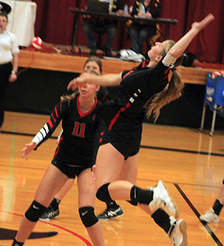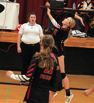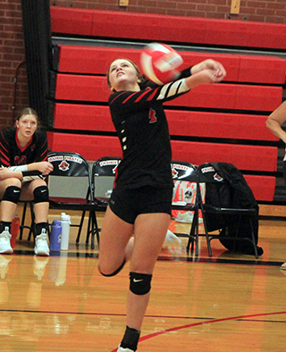 by as many as 6 points at 5-11.![]() They still led by 4 at 13-17 when Alli Geis scored a sideout kill. A kill by Sydney Shears and an ace by Lexi Schumacher cut the deficit to 16-17. After a trade of sideouts, Geis served an ace to tie it at 18. A kill each by Lexi Schumacher and Sierra Oliver gave Prairie their first lead of the game at 20-18. After a pair of sideouts, an ace by Oliber made it 22-19. Kamiah was able to pull within 1 at 23-22 before Lexi Schumacher scored a sideout kill. After a Kamiah sideout again cut the lead to 1, Lexi Schumacher pounded a spike off of a Kamiah blocker for the game-winner. In game 2, Prairie took a brief lead at 4-3 after 2 aces by Geis but that was the last time they would lead in the game. Kamiah built a 7-16 lead and wound up winning 14-25 to even the match at a game apiece. Kamiah scored first in the third game but then missed a serve. Tamden Pecarovich served Prairie to a 4-1 lead with an ace plus a block by Geis and a kill be Oliver. Prairie built the lead to as many as 9 at 18-9 after Pecarovich’s second turn at the service line. She took over after a net serve by Kamiah made it 14-9. A kill by Geis and 3 kills by Lexi Schumacher made it 18-9. Kamiah then began to chip away at the lead and eventually took only their second lead of the game at 20-21. A kill by Shears tied it but Kamiah then scored a sideout to make it 21-22. Kylie Schumacher scored a sideout kill then Shears served an ace to make it 23-22. Kamiah tied it with a tip then bricked their serve to get Prairie to game-point. Lexi Schumacher then scored her second game-winning kill of the match to give Prairie a 2-1 lead. In game 4 Kamiah threatened to blow out Prairie again as they built a 13-24 lead. Lexi Schumacher scored a cross court kill through and Kaylie Lockett went to the service line. Needing to be perfect, she did not miss a serve. She served 2 aces then Lexi Schumacher scored on a block. After a Kamiah timeout, Oliver scored a kill. Another ace by Locket was followed by 2 kills by Lexi Schumacher. Two more aces by Lockett got Prairie within 1 at 23-24. Unfortunately the game ended when Prairie was called for a double hit violation. That sent the match to a deciding fifth game, just like the match at Kamiah earlier this season. Prairie got off to a goo start when Pecarovich served an ace and Lexi Schumacher added a kill for a 2-0 lead. Kamiah came back with 5 straight points to take the lead. After a Prairie timeout, Geis scored a kill then Pecarovich and Oliver each scored a kill to tie the game at 5. Kamiah scored the next 2 points for a 5-7 lead. A block by Geis sent her to the service line where she served an ace to tie it. Kylie Schumacher then scored on a block to give Prairie an 8-7 lead. Kamiah snwered back and took a 9-12 lead before Kylie Schumacher scored a sideout kill. Shears served 2 aces to tie it at 12-12. A double hit violation gave Kamiah back the lead but a free ball kill by Lexi Schumacher tied it and sent Lockett to the service line. Geis slammed a spike off a Kamiah blocker for a kill to get to match point. Oliver then set up Lexi Schumacher for her third game-winning kill of the night that turned out to be the match winner. Lexi Schumacher had 24 kills which included 3 blocks. She also had 3 assists and an ace. Geis had 14 kills, including 2 blocks with 2 assists and 6 aces. Kylie Schumacher had 13 kills including a block. Oliver had 10 kills, 22 assists and 4 aces. Shears had 4 kills, 1 assists and 3 aces. Pecarovich had 2 kills, 30 assists and 2 aces. Taylor Riener had 2 kills and 2 assists. Lockett had 1 assist and 6 aces. The JV team lost all three of their games, 18-25, 8-25, 12-15. They fell behind 1-6 to open the first game but were able to rally back and take their first lead with Ellie Nuxoll serving. Erica Schlader scored a sideout kill to make it 8-12 when Nuxoll took over serving. She serve two aces then Aubree Rehder scored a kill. 3 more aces gave Prairie the lead and a back row kill by Nadia Cash made it 15-12. Kamiah came right back though to retake the lead at 15-16. Prairie tied it on a dig kill by Lacey Schwartz but Kamiah then took the lead right back and went on to win by 7. Avery Riener served Prairie to a 5-2 lead early in the second game with 3 aces plus a kill by Hailey Hanson. Kamiah came back to tie it at 7-7 then took control of the game with an 8-point service run that put them ahead 7-15. After a trade of sideouts, Kamiah got a 9-point serving run to close out the game. In the third game Prairie took the early lead on a kill each by Cash, Riener and Hanson plus an ace by Cash that made it 4-1. Kamiah came back to take the lead at 7-8. A kill by Halee Rowland and an ace by Rehder made it 9-8 but Kamiah scored 2 straight to retake the lead. The game was tied again at 10, 11 and 12 with Kamiah retaking the lead each time. After retaking the lead at 12-13, the Kubs scored the final 2 points to win the game. The C team lost their match 25-22, 19-25, 14-16. Vs. Logos The Lady Pirates played Logos tougher than they did a week earlier at Moscow but still came out on the short end of the score. At Moscow they were dominated in the first two games and lost the third by 4. This time they were close in two of the lost sets and managed to pull out a 2-point win in the third set. The second set was the only one they let get away from them. With the split Prairie is now 4-7 overall and in league play. Prairie won the JV match 2 games to 1. ![]() Alli Geis goes up for a block against Kamiah. ![]() Kylie Schumacher slams a spike over thenext agaistt Kamiah. Also shown is Taylor Riener. ![]() Lexi Schumacher makes a pass in the Kamiah match. ![]() Sierra Oliver reaches for a spike against Kamiah. Also shown are Alli Geis and Sydney Shears. ![]() Sydney Shears sets the ball agaisnt Kamiah. ![]() Tamden Pecarovich serves against Kamiah. ![]() Taylor Riener goes for a spike against Kamiah. Also shown are Alli Geis and, partially hidden, S