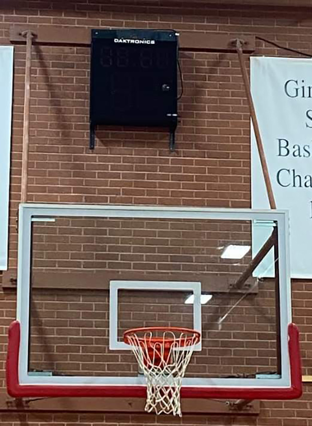 installed at the PHS gym. Rick Forsmann and David Shears mounted them