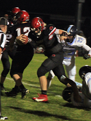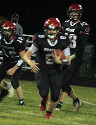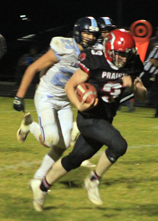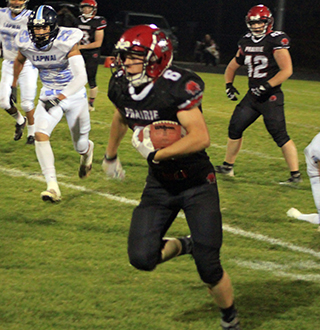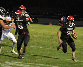 The Prairie football team played a wild, high scoring game against Lapwai Friday, Oct. 6 at Cottonwood and came away with a 54-44 win.