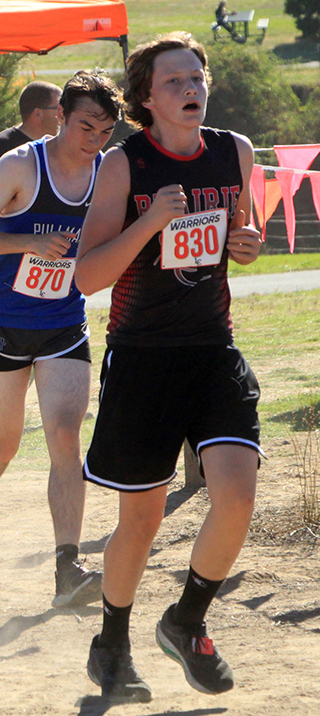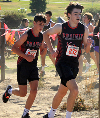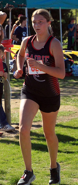 4 finish in top 10 at Inland Empire Meet Prairie had 4 top 10 finishers in races at the Inland Empire Cross Country meet at Lewiston on Saturday, Oct. 7. In the high school girls JV race Evelyn Gehring was 2nd in 22:25 with Aubree Geis 4th in 22:56 and Olivia Uhlenkott 8th in 23:30. Also Elizabeth Severns was 22nd in 24:55, Natalie Goeckner was 42nd in 27:12 and Ella McLeod was 69th in 32:59 as the girls placed 2nd as a team behind Sandpoint with 57 points. Sandpoint scored 50. There were 76 runners in the race. In the Junior High boys race, Phineas Fitch placed 3rd in 8:33 on the 2500 meter course, which is shorter than the usual 300 meters junior high students usually run. Gabe Severns was 37th in 10:40. Kade Hanson was 56th in 11:34 and Anthony Forsmann was 80th in 14:01 out of 96 runners. Ben Secrest was the top finisher for Prairie in the high school boys race as he placed 21st out of 150 runners. Chase VonBargen was 24th in 19:38. Jackson Enneking was 64th in 20:56. Max Rehder was 103rd in 22:49; Dylan Klapprich was 121st in 24:31. Landon Riener was 123rd in 24:33. Zane Uptmor was 140th in 27:33 and Gabe DeCaria was 143rd in 28:55. As a team they finished 10th out of 11 teams with 227 points. ![]() ![]() ![]() Evelyn Gehring, Aubree Geis and Olivia Uhlenkott finished 2nd, 4th and 8th in the JV girls race at the Inland Empire Meet at Lewiston on Saturday. ![]() Chase VonBargen and Ben Secrest were Prairie's top finishers in the high school boys JV race at the Inland Empire Meet. They finished 24th and 21st respectively. ![]() Phineas Fitch finished third in the junior high boys race at Lewiston. ![]() ![]() Elizabeth Severns nears the finish and Natalie Goeckner makes the turn for another lap. ![]() Ella McLeod makes the turn for the final lap of the course and seems to say, "Really, I have to go around again?" ![]() ![]() Jackson Enneking and Max Rehder make the turn for another lap. ![]() Landon Riener and Dylan Klapprich race to the finish. ![]() Gabe DeCaria makes the turn for another lap. ![]() ![]() ![]() Gabe Severns, Kade Hanson and Anthony Forsmann in the junior high boys race. October 13-Run Around the Lake at Winchester Lake State Park, High School girls at 3 p.m., High School boys at 4 p.m.19-District meet, Lewiston Orchards 28-State meet at Pocatello |