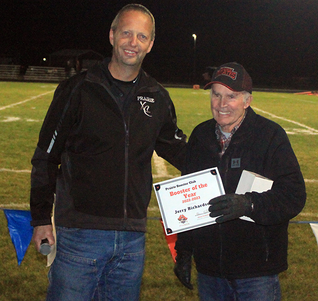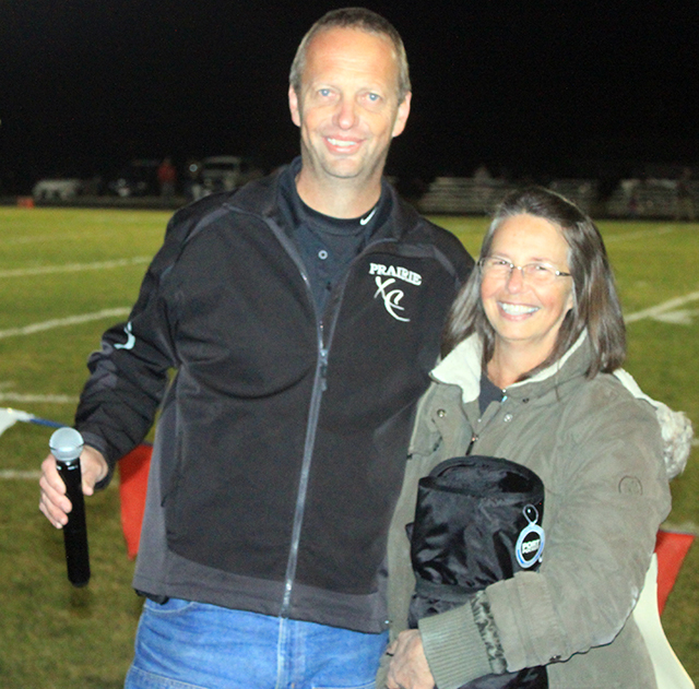 an award from the Prairie Booster Club for her work in keeping Dan and