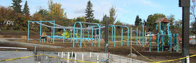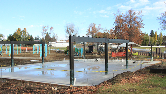 The new park pavilion now has some of the wall framing up as part of pouring the concrete slab. Click on the photo for a larger view.