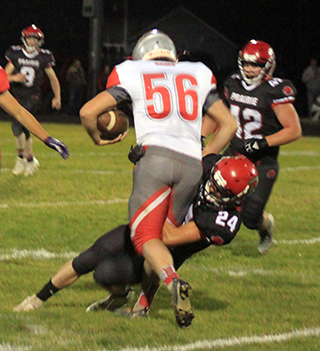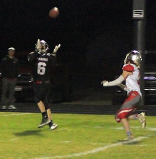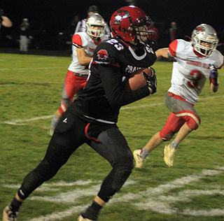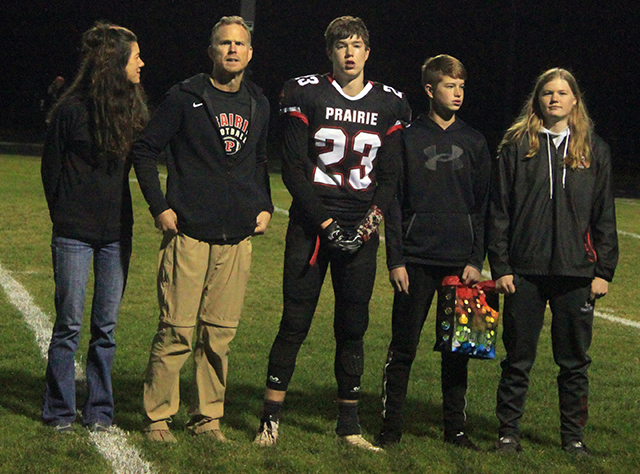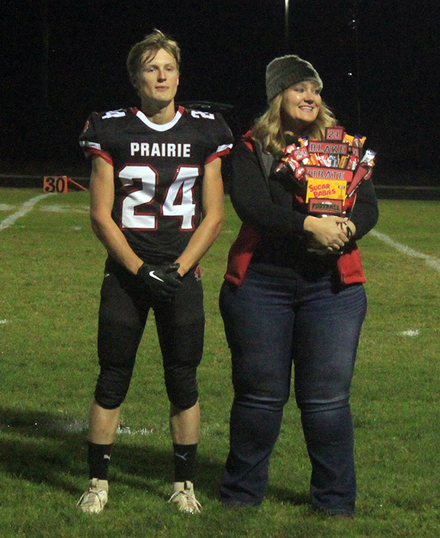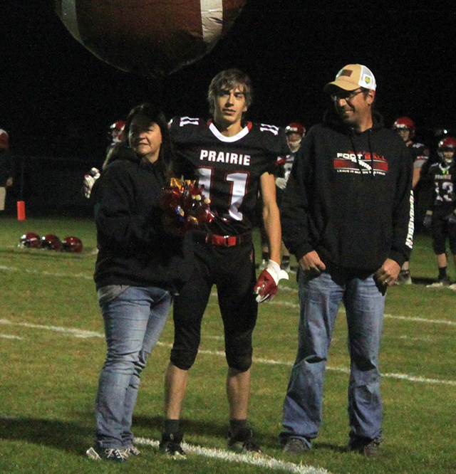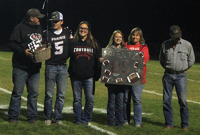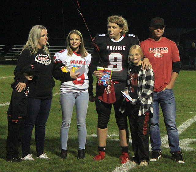 The Prairie football team came up big in their final home game of the season as they knocked off Clearwater Valley 46-8 Friday, Oct. 13. ![]() Prior to the game Prairie’s five seniors were honored with their families. They were Ethan VonBargen, Blake Bunce, Bennie Elven, Noah Behler and Trenton Lorentz. At halftime senior cheerleaders Miranda Klapprich and Meghan Fowler were honored as were cross country seniors Elizabeth Severns and Zane Uptmor. Prairie received the opening kickoff, which they fumbled but Elven recovered at the Prairie 30. The Pirates moved the ball down to the C.V. 24 before turning the ball over on downs with an incomplete pass on fourth and 2. C.V. took over and picked up a quick first down then were forced to punt on fourth and 6 from their 42. A bad snap to the punter led to a 22 yard loss with Prairie taking over at the C.V. 20. Dylan Uhlenkott picked up 13 yards up the middle to set up first and goal at the 7. Prairie then ran the same play again with Uhlenkott scoring a touchdown. Behler then ran in the 2-pointer to give the Pirates an 8-0 lead. Uhlenkott then executed an onside kick where he topped the ball and raced along with it until it crossed the 50 where a C.V. player touched it. Uhlenkott wound up recovering at the Prairie 49. 3 straight runs by Uhlenkott netted 20 yards. Behler then kept the ball for a 6 yard gain. Uhlenkott then picked up 11 to set up a first down at the 14. Two runs by Levi Gehring moved the ball to the 10. On fourth and 6 from the 10, Behler tossed a short pass to Gehring on the left side and Gehring took the ball into the end zone for a touchdown. Behler then passed to Uhlenkott for the 2 pointer to give Prairie a 16-0 lead with 45 seconds left in the first quarter. The C.V. return man returned a short kickoff 11 yards to the Prairie 47. C.V. picked up 3 yards on a run then got 5 from the Pirates on a penalty. With 2nd and 2 at the 39, they started going backwards. Matt Wemhoff tackled Jake Fabbi for a 2 yard loss. He then tackled quarterback Carson Schilling for a 7 yard loss. On fourth and 11 from the 49, Wemhoff again got into the backfield and tackled Schilling for a 4 yard loss to give the Pirates the ball on downs at the C.V. 45. Uhlenkott ran twice for 5 yards and a first down. Behler recovered a fumbled snap and still managed to gain 2 then ran a sneak for 12 yards to the C.V. 21. On the next play Uhlenkott went up the middle for 21 yards and his second touchdown. Behler ran in the 2-pointer to make it 24-0. On C.V.’s next possession they managed to moved the ball down to the Prairie 13 where they had a second and 4. Wemhoff then took over on defense again. He tackled Bass Myers for a 6 yard loss then sacked Schilling for a 7 yard loss to set up fourth and 17 at the 26. Schilling was stopped for no gain on fourth down as Prairie took over on downs. Uhlenkott had runs of 4 and 14 yards to move the ball to the 44. A 4 yard run each by Behler, Uhlenkott and Chris Schumacher moved the ball to the C.V. 44. Gehring then got open deep down the right side and Behler connected with him for a 44 yard touchdown. The 2-point pass attempt fell incomplete as Prairie led 30-0 with 2:38 left in the half. On C.V.’s ensuing possession they got a huge pass play of 49 yards with Gehring making the touchdown saving tackled at the Prairie 31. C.V. then had a touchdown run by Schilling called back on a chop block penalty and they wound up turning the ball over on downs at the Prairie 41. 3 plays later Prairie turned it back to the Rams on an interception. C.V. picked up a first down and then had time run out in the half. C.V. received the second half kickoff and started at their own 40. On third and five Schumacher intercepted Schilling’s pass at the Prairie 45 and returned it to the C.V. 47. A penalty on the tackled against the Rams moved the ball to the 42. Prairie faced a fourth and 4 at the 36 and Behler connected with Gehring on a short pass. Gehring broke a tackle and picked up 8 yards and a first down to the 28. Gehring then ran for 7 and Uhlenkott followed with a 15 yard run to set up first and goal at the 6. Behler then ran the ball into the end zone for a touchdown. Behler passed to Gehring for the 2-pointer to give Prairie a 38-0 lead. C.V. got a 35 yard run from Schilling to move them into Pirate territory. However on second and 5, Schilling fumbled and recovered with Wemhoff tackling him for a 10 yard loss. That led to a fourth down pass attempt that fell incomplete as Prairie took over at their own 27. Behler