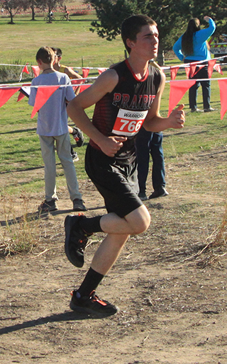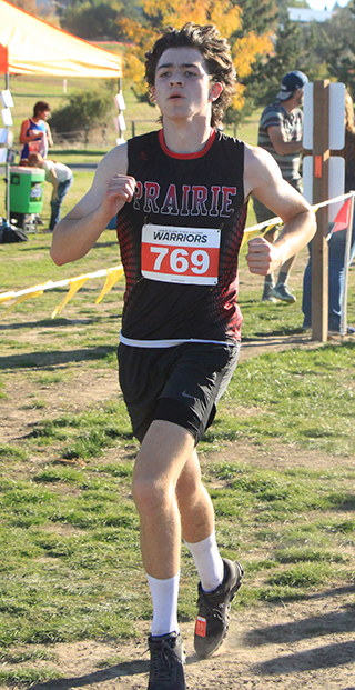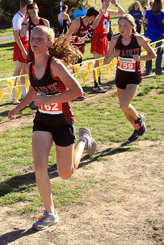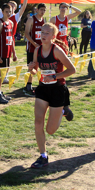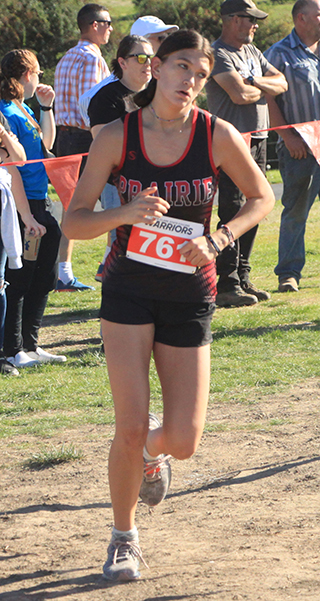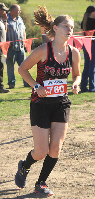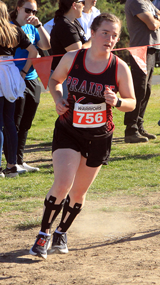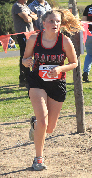 Girls team, two boys advance to State The Prairie girls cross country team won the team title at the Regional Meet held Thursday, Oct. 19 at the LCSC course in the Lewiston Orchards. Also two members of the boys team qualified for state. The girls team scored 18 points to easily beat out 2nd place Potlatch. Logos likely would have won the team title but they had just 5 runners and their fifth runner was unable to finish. Prairie’s top finisher was Evelyn Gehring who placed 4th in 22:57. Olivia Uhlenkott was 6th in 23:06. Aubree Geis was 7th in 23:11. Elizabeth Severns was 11th in 24:39. All four would have qualified for state as individuals and received medals. Natalie Goeckner was 15th in 26:37. Callie Remacle was 18th in 27:29. Alaina Lustig was 28th in 32:28. Ella McLeod was designated as a JV runner as you can only have 7 run in the varsity race. She was timed in 29:59 and will be an alternate for the team at State. In the boys race Prairie finished 3rd as a team, just 4 points behind Timberline. Timberline and Logos qualified for state as teams. Ben Secrest and Chase Von Bargen both qualified for state as individuals and received medals. Secrest was 13th in 19:26 while VonBargen was 15th in 19:28. The top 16 qualified for state which means Jackson Enneking in 19th fell just short. His time was 20:04. Max Rehder was 36th in 22:30. Dylan Klapprich was 38th in 23:20. Landon Riener was 39th in 23:24. Zane Uptmor was 42nd in 25:54. Gabe DeCaria ran as a JV runner and was timed in 28:09. The State Meet will be at the Portneuf Wellness Center in Pocatello on Saturday, Oct. 28. The girls race will be held at 1 p.m. Mountain Time while the boys race will be held at 2 p.m. Mountain Time. ![]() Prairie’s state qualifiers in cross country. The girls team won the district championship and qualified as a team while two Prairie boys qualified for State. Front from left are Evelyn Gehring, Olivia Uhlenkott, Aubree Geis and Ella McLeod. Standing from left are Ben Secrest, Alaina Lustig, Callie Remacle, Elizabeth Severns, Natalie Goecker and Chase VonBargen. ![]() ![]() Evelyn Gehring races to the finish in 4th place at District. Olivia Uhlenkott and Aubree Rehder finished 6th and 7th. ![]() ![]() ![]() From left are Elizabeth Severns, Natalie Goecker and Callie Remacle making the turn for another loop around the course. ![]() ![]() Alaina Lustig and Ella McLeod at District. ![]() ![]() Ben Secrest and Chase VonBargen coming down the final stretch to qualify for State. ![]() Jackson Enneking finished just a couple spots out of a state qualifying position. ![]() ![]() ![]() Max Rehder, Dylan Klapprich and Landon Riener at District. ![]() Gabe DeCaria ran at District. October 28-State meet at Pocatello, girls race at 1 p.m. MDT, boys race at 2 p.m. MDT |