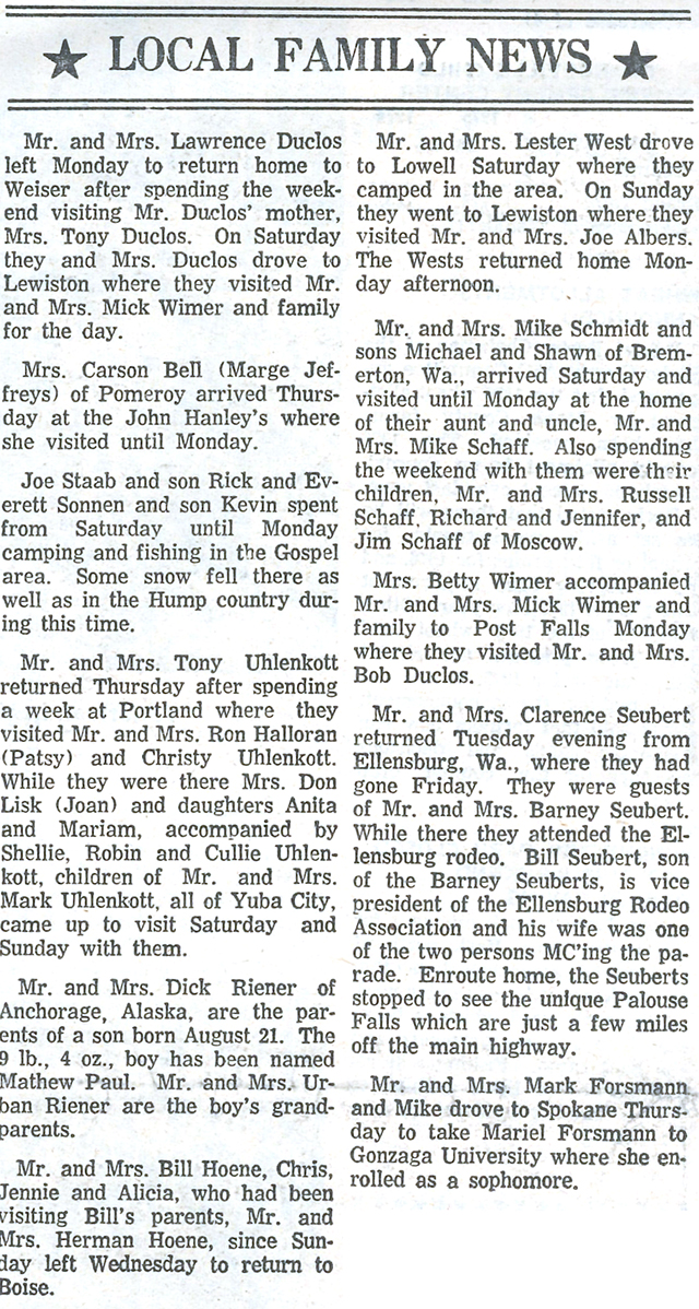 Cottonwood Local Family News from the September 7, 1975 edition of the Chronicle. Click on the photo for a larger view.
