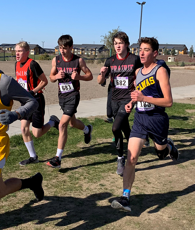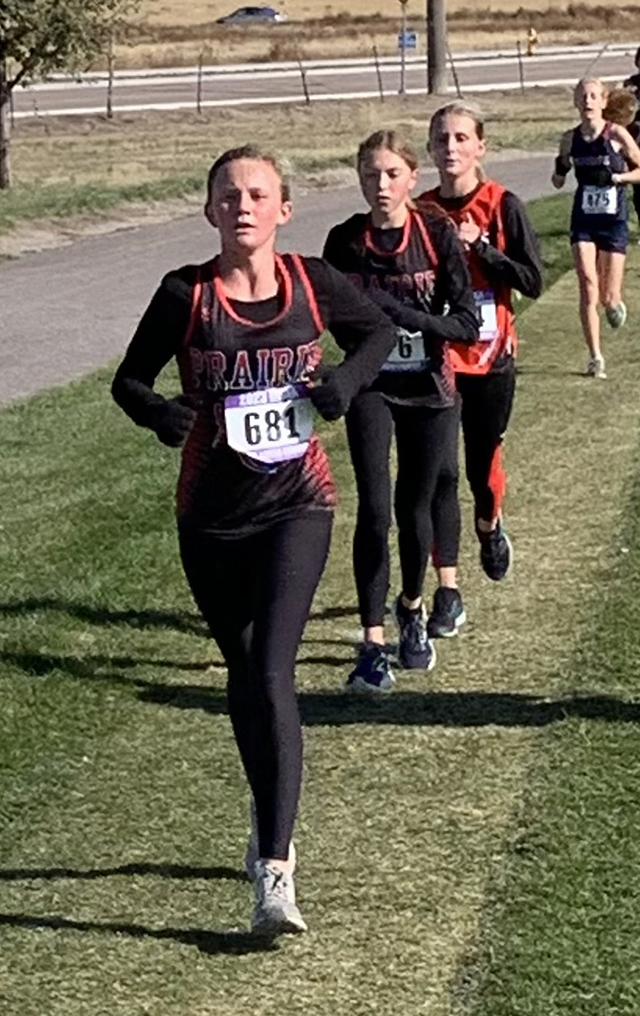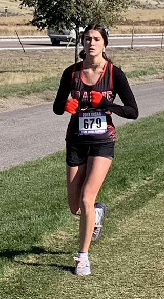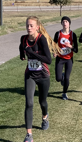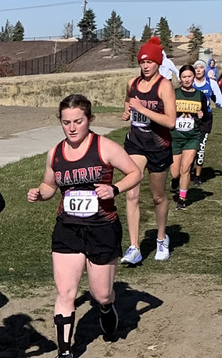 Girls team places 6th at state The Prairie girls cross country team placed 6th at the State Meet held in Pocatello Saturday, Oct. 28. Olivia Uhlenkott was Prairie’s top finisher in 37th with a time of 22:52.30. Aubree Geis was 39th in 22:59.75. Evelyn Gehring was 46th in 23:35.23. Elizabeth Severns was 59th in 24:40.44. Callie Remacle was 68th in 27:04.22. Natalie Goeckner was 70th in 28:24.14. Alaina Lustig was 72nd in 34:25.80. For the boys team Chase VonBargen was Prairie’s top finisher in 71st at 20:24.91. Ben Secrest was 77th in 20:36.85. According to coach Glenn Poxleitner the races were run in near freezing conditions. ![]() The entire group of state qualifying Prairie cross country runners. From left are Ben Secrest, Ella McLeod, Aubree Geis, Natalie Goeckner, Olivia Uhlenkott, Elizabeth Severns, Evelyn Gehring, Alaina Lustig, Callie Remacle and Chase VonBargen. ![]() Olivia Uhlenkott leads Aubree Geis at State. ![]() ![]() Evelyn Gehring is shown in the photo at left. Natalie Goeckner leads Elizabeth Severns in the photo at right. ![]() ![]() Callie Remacle and Alaina Lustig. ![]() Chase VonBargen and Ben Secrest early in the race at State. All photos courtesy of Glenn Poxleitner. |