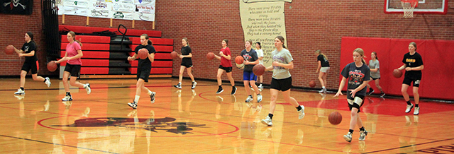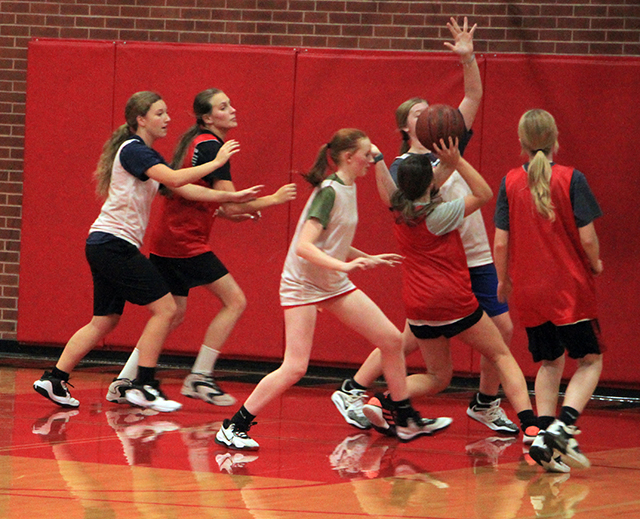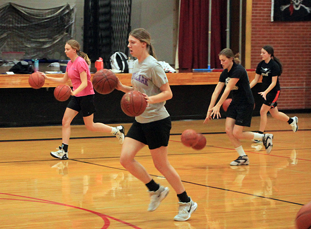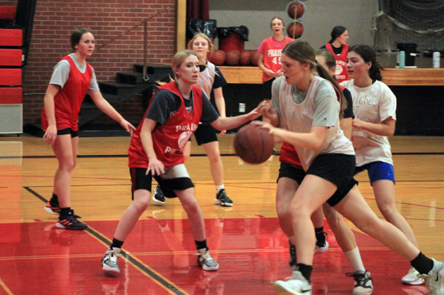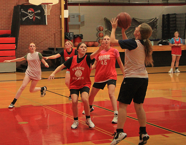 19 turn out for Lady Pirates basketball The Prairie girls basketball team will be very young this year with just 1 senior and 4 juniors among the 19 players turned out Coach Lori Mader, in her 14th year at the helm, still thinks they can contend for a state berth although she feels Lapwai and Kamiah would have to be the favorites with Troy a contender as well. Alli Geis, who saw a lot of playing time off the bench last year, is the only senior on the team. Returning starter Lexi Schumacher leads the juniors with Aubree Rehder and Ellie Nuxoll having started for the JV team last season. Kadence Kalmbach is the fourth junior. Five sophomores include returning varsity starters Kylie Schumacher and Hailey Hanson. Sage Elven was a swing player last year and was the leading scorer on the JV team. Sydney Shears was called up to varsity for tournaments and Avery Riener is the fifth sophomore. That leaves almost half the squad as freshmen. They are Maggie Nuxoll, Kenzie Mizer, Nadia Cash, Erica Schlader, Kennedy Riener, Lillian Rehder, Ella McLeod, Halee Rowland and Kylee Riggers. Daphne Hanson returns as JV coach. The team will see their first action next Tuesday, Nov. 14 at home in a non-league matchup against Orofino. Below is the schedule which was updated Nov. 2. ![]() A ball handling drill where each player had to dribble two basketballs. Shown are Alli Geis, Kylie Schumacher, Ellie Nuxoll and Aubree Rehder. ![]() Another ballhandling drill. ![]() Nadia Cash looks to shoot. Also shown are Halee Rowland, Ellie Nuxoll, Kylee Riggers, Hailey Hanson and Kadence Kalmbach. ![]() Kylie Schumacher drives to the hoop past Ellie Nuxoll. Also shown from left are nadia Cash, Kadence Kalmbach, Erica Schlader and Lillian Rehder. ![]() Sage Elven puts up a shot during a 3 on 3 scrimmage. Halee Rowland shoots during a 3 on 3 drill. Also shown from left are Kylee Riggers, Ella McLeod, Aubree Rehder and Alli Geis, who is the only senior on this year's team. PIRATES GIRLS BASKETBALL SCHEDULE FOR 2023-24