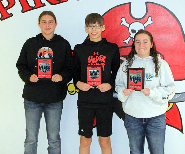 ![]() Prairie volleyball held their awards night on November 2. Award winners from left are: Lexi Schumacher, most valuable; Alli Geis, captain; Tamden Pecrarovich, most improved and Sydney Shears, most inspirational. Photo by Julie Schumacher. ![]() Cross Country awards were held Wednesday, Nov. 8. From left are Elizabeth Severns and Landon Riener, co-most inspirational (voted on by the team) and Natalie Goeckner, Extra Mile Award winner. PIRATES GIRLS BASKETBALL SCHEDULE FOR 2023-24