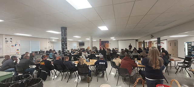 82 area emergency service personnel attended a hazardous Materials Awareness class in the cafeteria at Prairie High School. The class was hosted by the Cottonwood Fire and Police Departments and sponsored by Idaho County Emergency Service Manager Jerry Zumalt and Idaho County Local Emergency Planning Committee. Photo provided by Terry Cochran. |